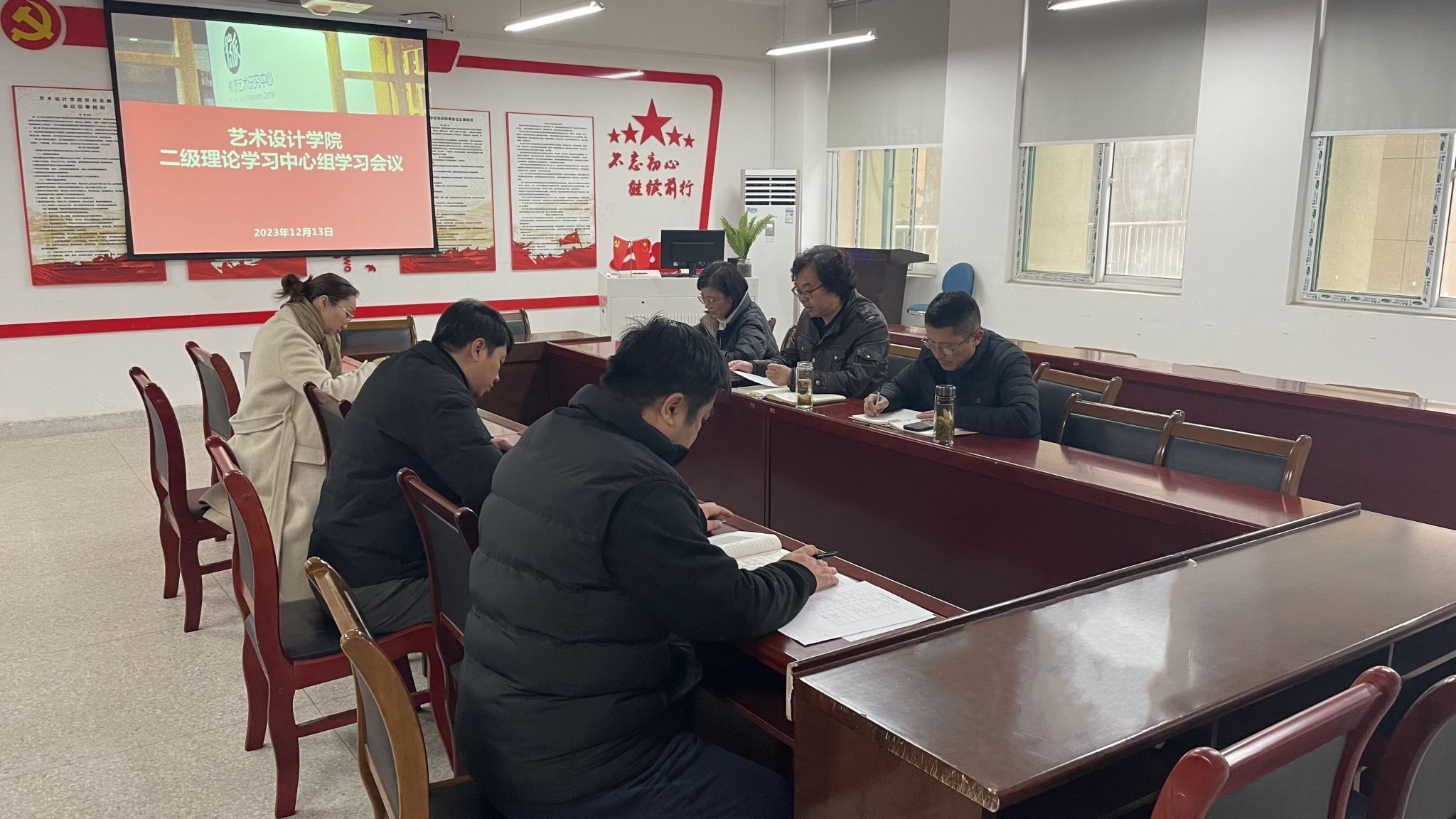 12月13日中午,艺术设计学院党总支在致知楼党员活动室召开二级理论学习中心组学习会议,校党委委员、党委宣传统战部部长、艺术设计学院党总支书记孔成,艺术设计学院党总支副书记、院长魏芬,艺术设计学院党总支副书记张乐和学院党总支委员参加学习。