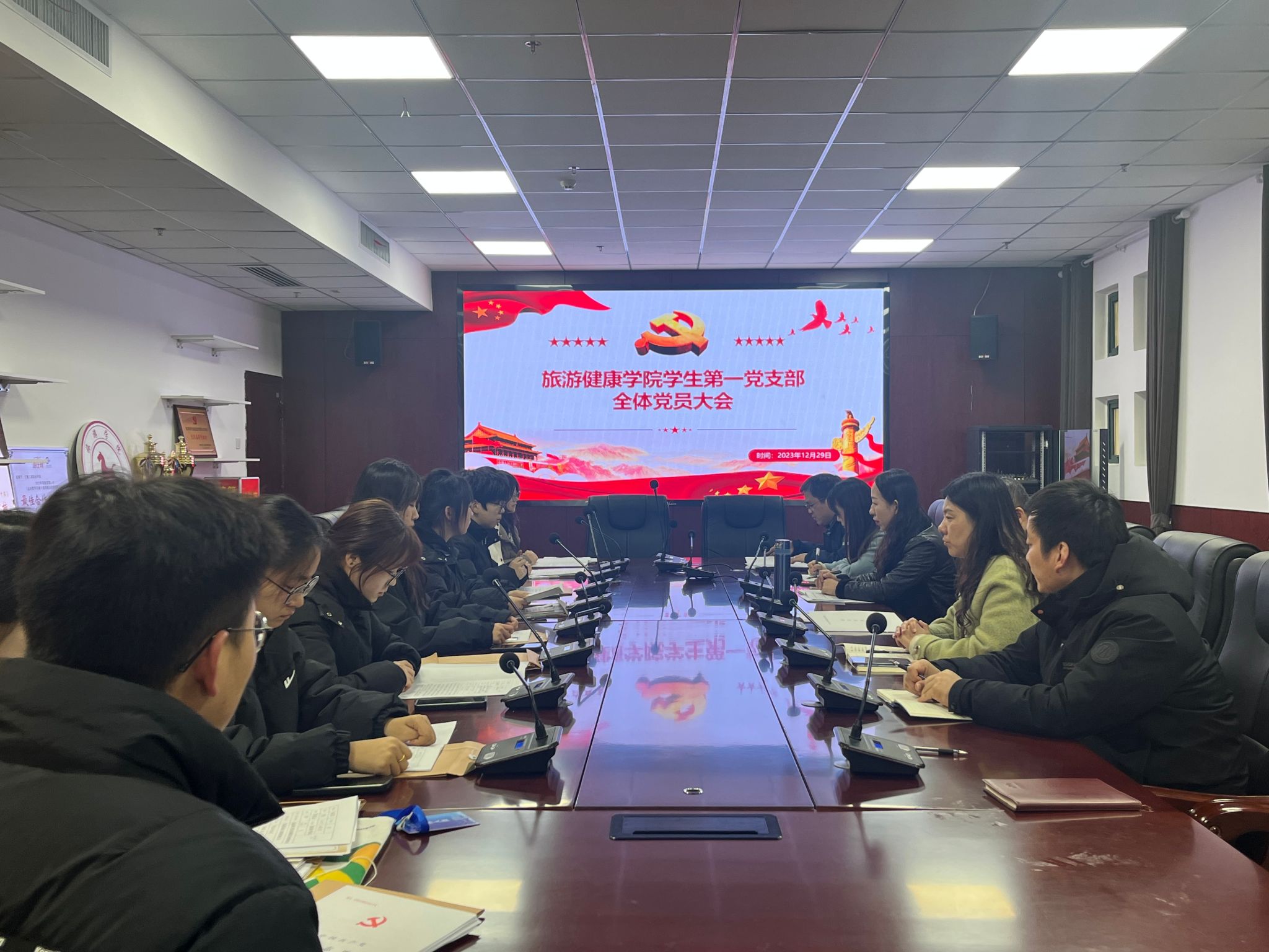 2023年12月29日中午,旅游健康学院学生第一党支部在学院三楼会议室召开全体党员大会讨论世界第一大赌场,澳门金沙城中心接收耿思琴等9名同学为预备党员事宜。学院党总支书记杨锐到会指导,会议由支部书记张亚运主持。