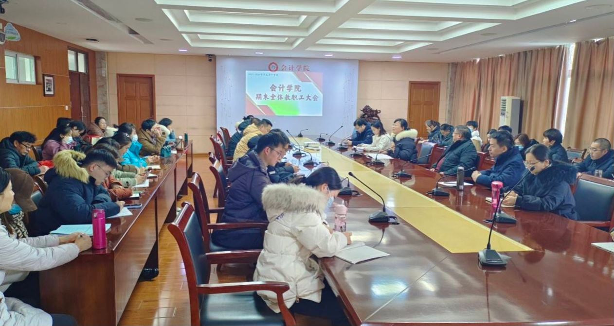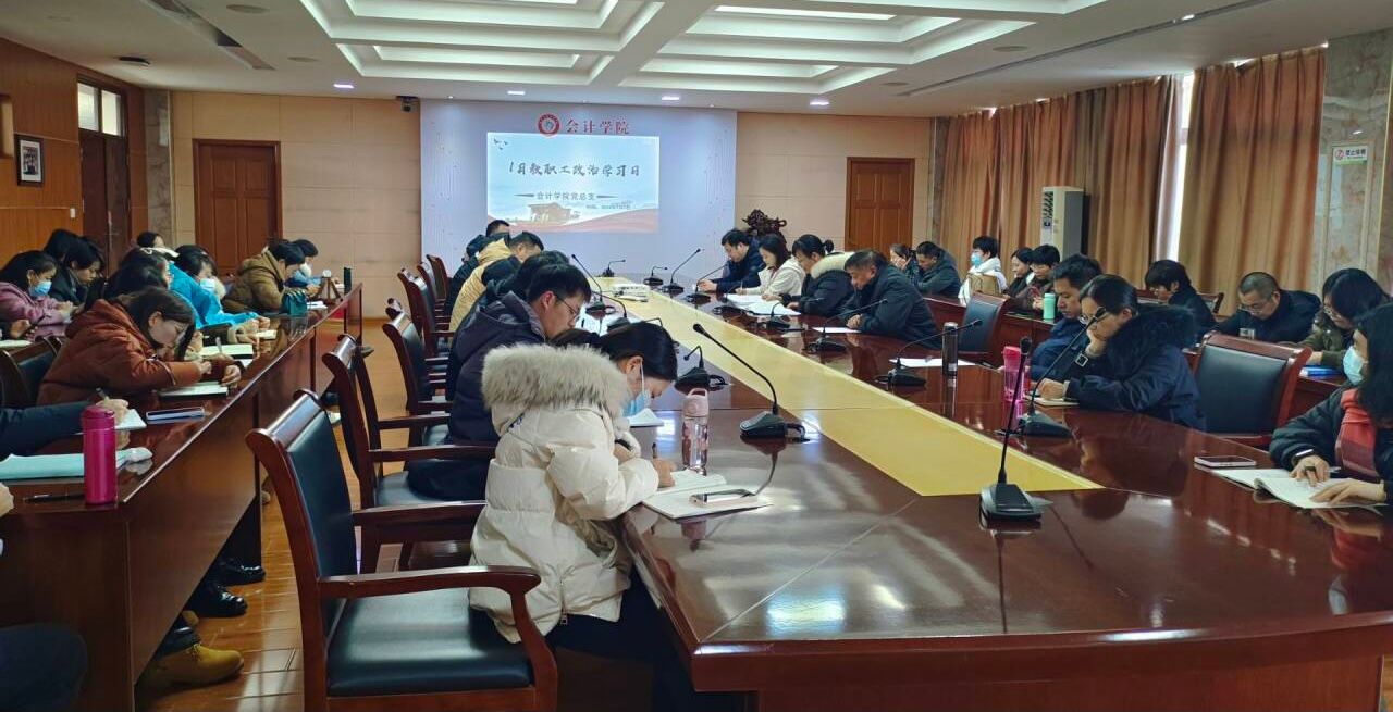 2024年1月3日,会计学院在明德楼二楼二号会议室开展1月教职工政治理论学习会议,会议由党总支书记赵艳主持,党总支副书记、院长高克智,党总支纪检委员、副院长费玄淑和全体教职工参加学习。