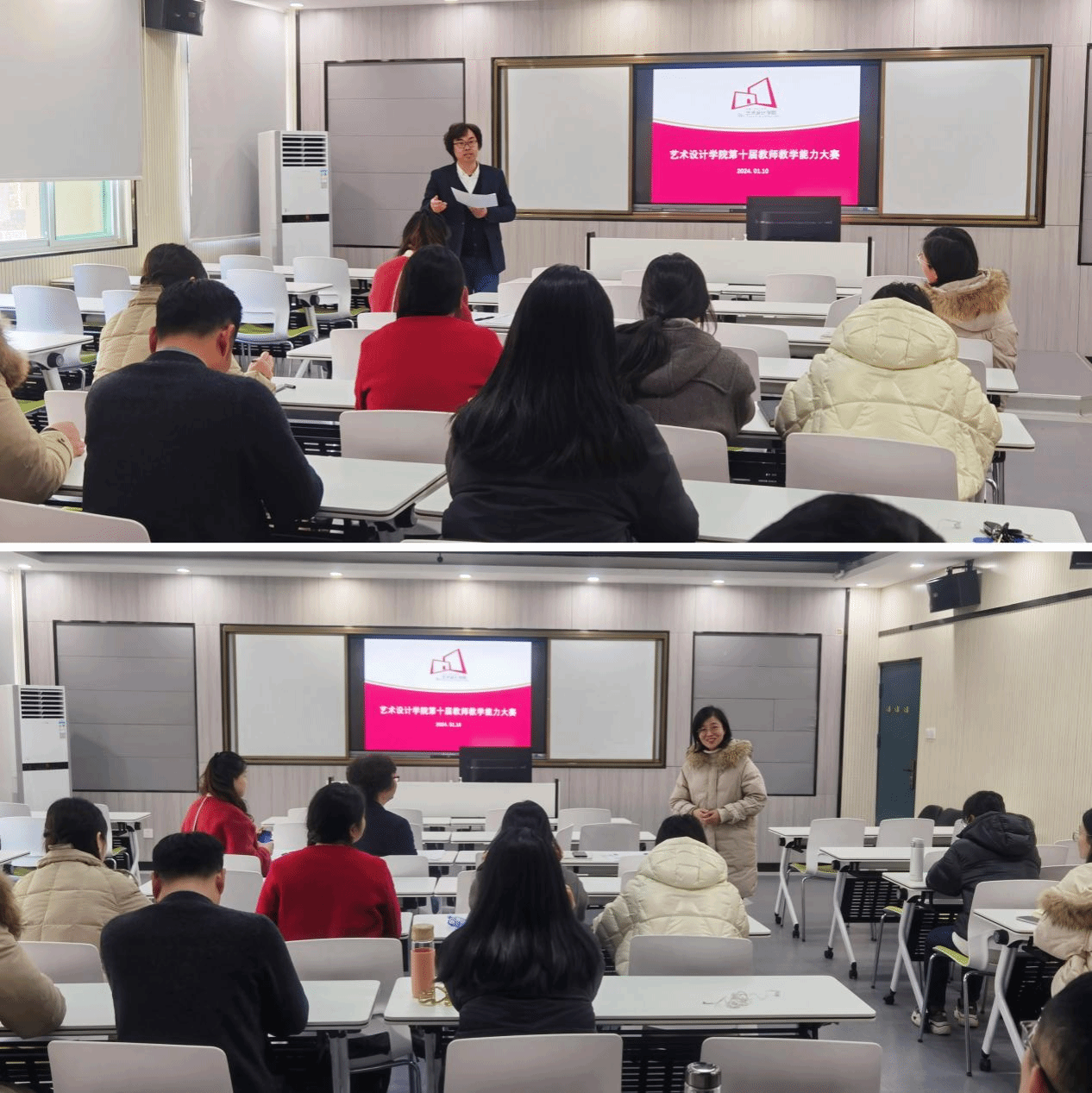 为响应学校教师教学能力大赛号召,全面提升教师综合素质、专业化水平和创新能力。艺术设计学院于2024年1月11日下午在致知楼二楼智慧教室举办了2024年教师教学能力大赛。校党委委员、宣传统战部部长、艺术设计学院党总支书记孔成、艺术设计学院副书记、院长魏芬、周心懿三位老师担任比赛评委,学院全体教职工观摩比赛。