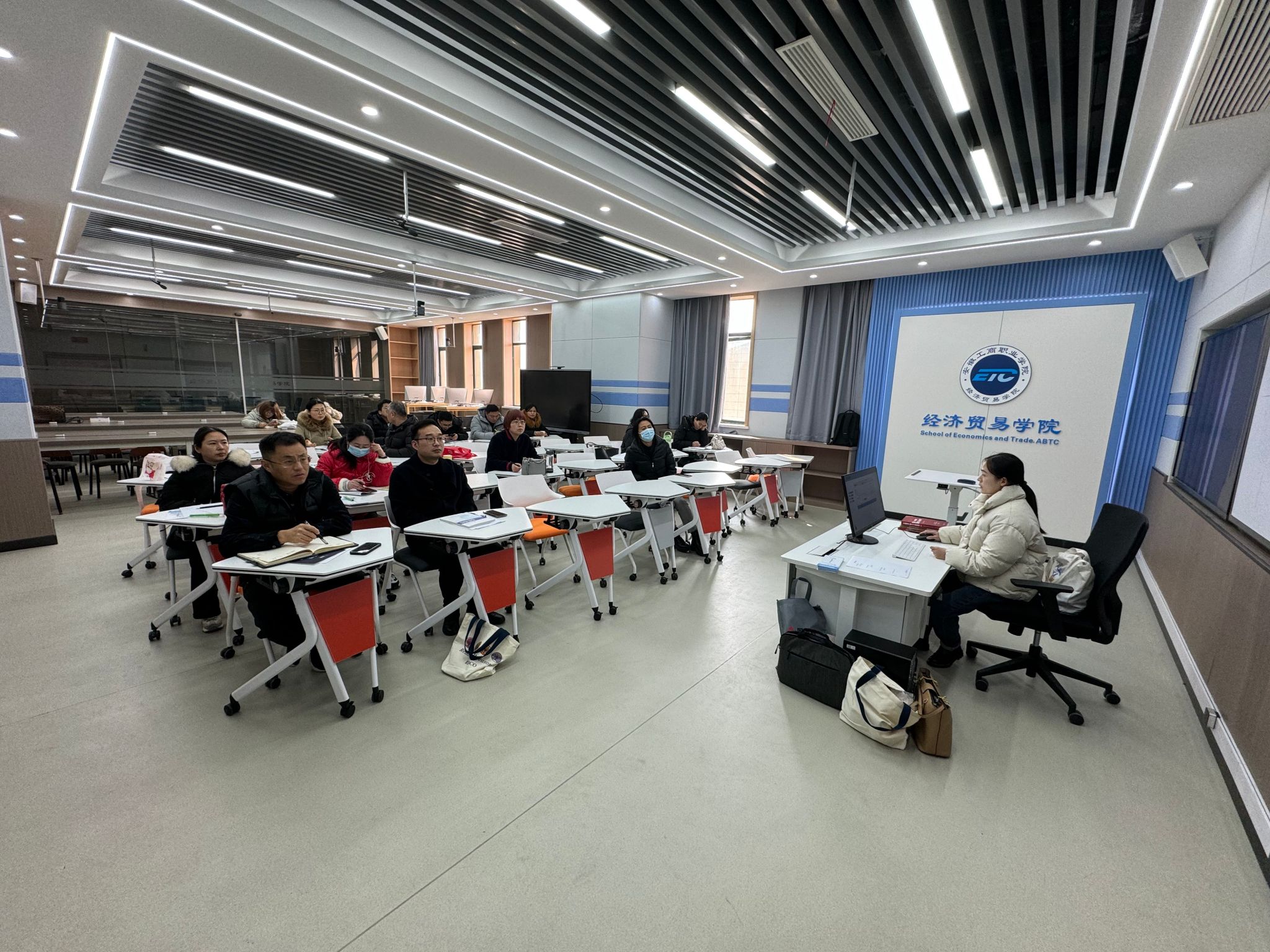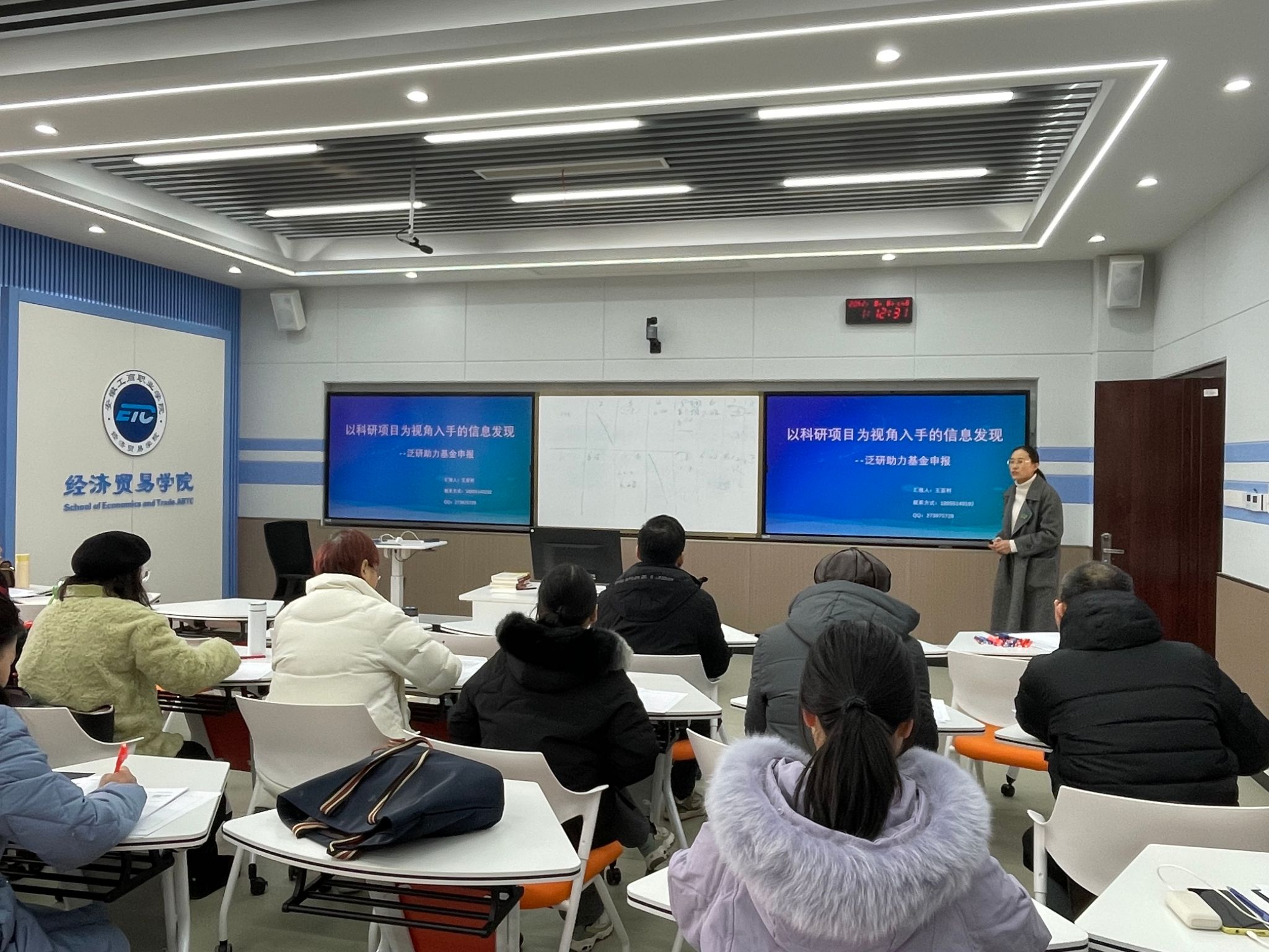 为进一步提升我院教师的教科研能力,全面了解数据库使用技能和价值,促进数字资源的有效利用,在学校图书馆的大力支持下,2023年12月至2024年1月,经济贸易学院在多功能智慧实训中心举办第三期教科研能力提升专题系列活动——数据库平台系列培训讲座。经济贸易学院全体教职工参加培训。