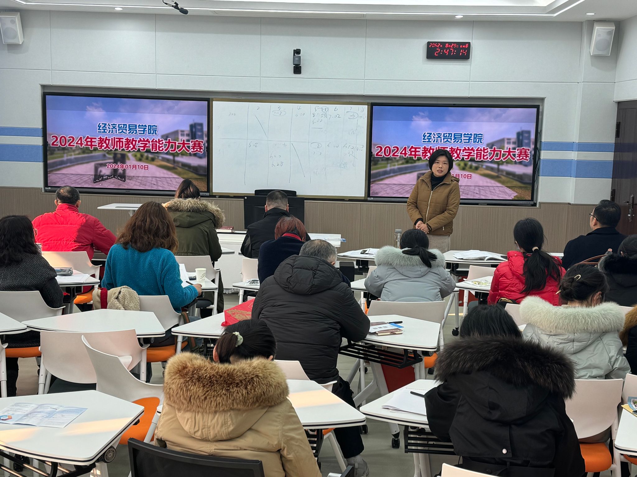 为更好对接校赛及省级以上高职院校教师教学能力大赛,不断提高我院教师的师德践行能力、专业教学能力、综合育人能力和自主发展能力,2024年1月10日下午,经济贸易学院在多功能智慧实训中心隆重举办经济贸易学院第四期教科研能力提升专题系列活——2024年教师教学能力大赛。经济贸易学院院长张颖教授出席大赛现场,学院全体教师观摩了比赛。