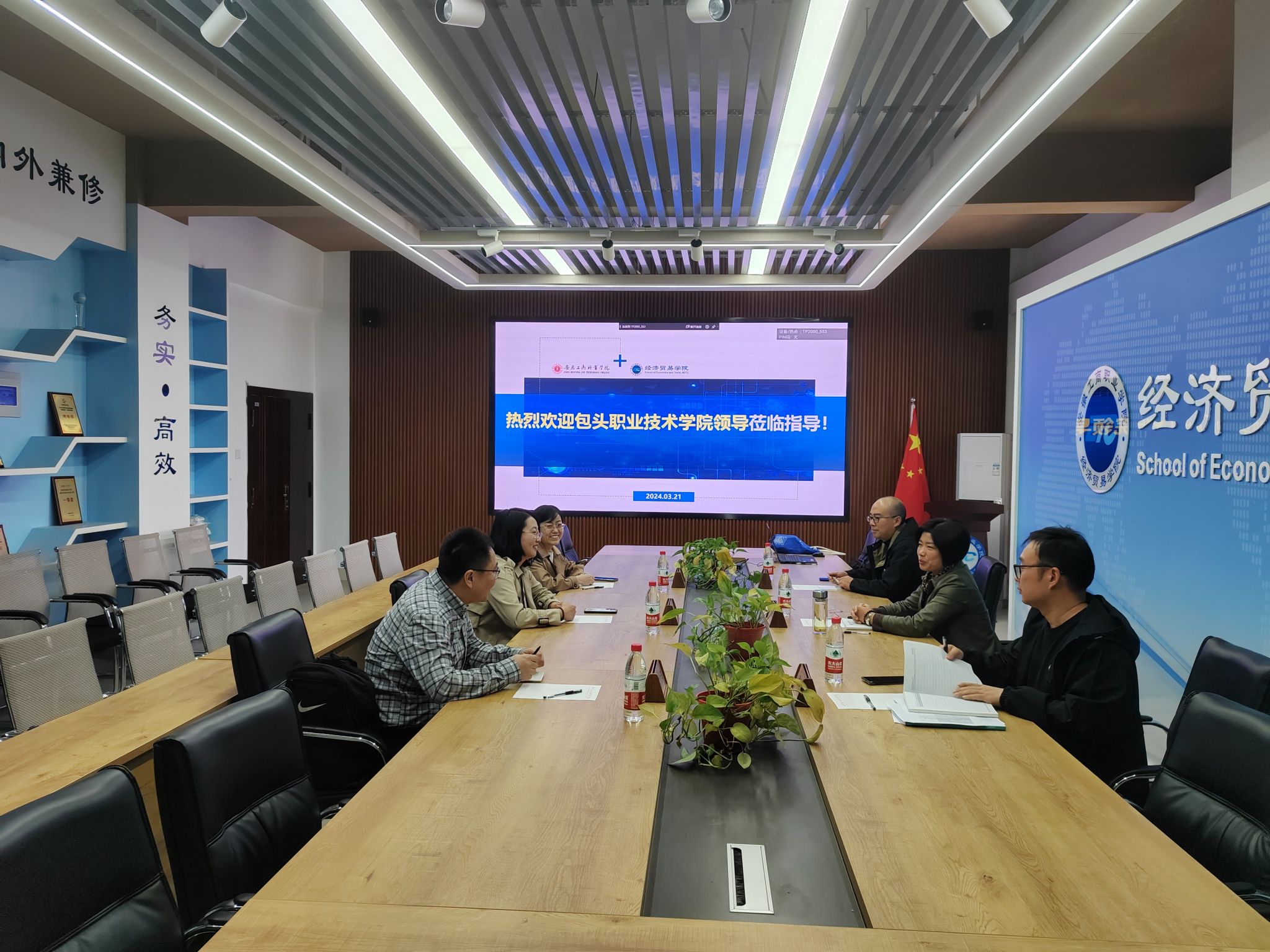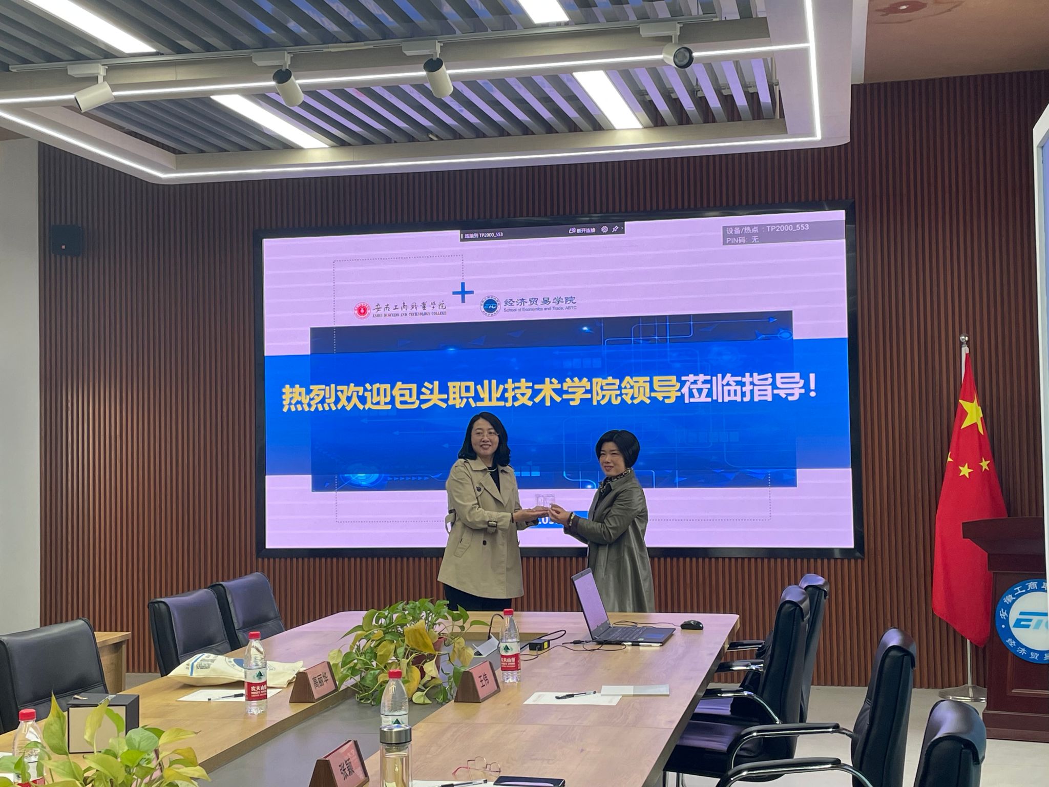 杨玉珺主任对经济贸易学院的热情接待表示衷心地感谢,对经济贸易学院的建设经验、已取得的丰硕成果及独具特色的经贸文化给予了高度评价。并就包头职业技术学院的基本情况、经济贸易管理系的建设与发展情况作了经验分享与交流。