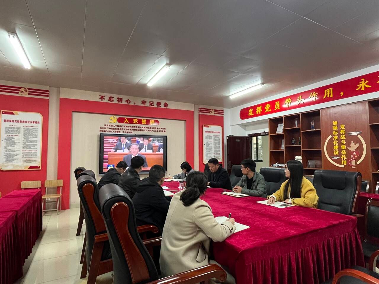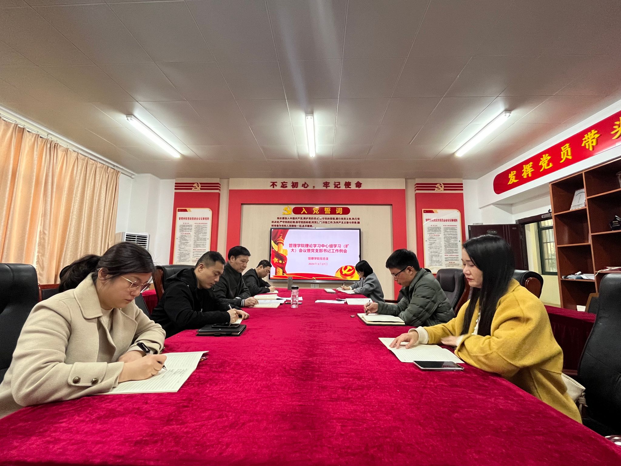 根据学校党委世界第一大赌场,澳门金沙城中心二级学院理论学习中心组学习及党支部书记例会工作安排,3月27日中午,管理学院党总支在学院党员活动室召开二级理论学习中心组学习(扩大)会议暨党支部书记工作例会,重点学习全国两会精神,深入学习《安徽工商职业学院教师师德考核实施办法》《安徽工商职业学院党总支委员会会议议事规则》《安徽工商职业学院党政联席会议议事规则》(修订)等文件,并围绕学院教师师德建设展开交流发言。学院党总支书记曹大友主持会议并领学,学院党总支副书记汪锋、党总支委员、党支部书记参加会议。