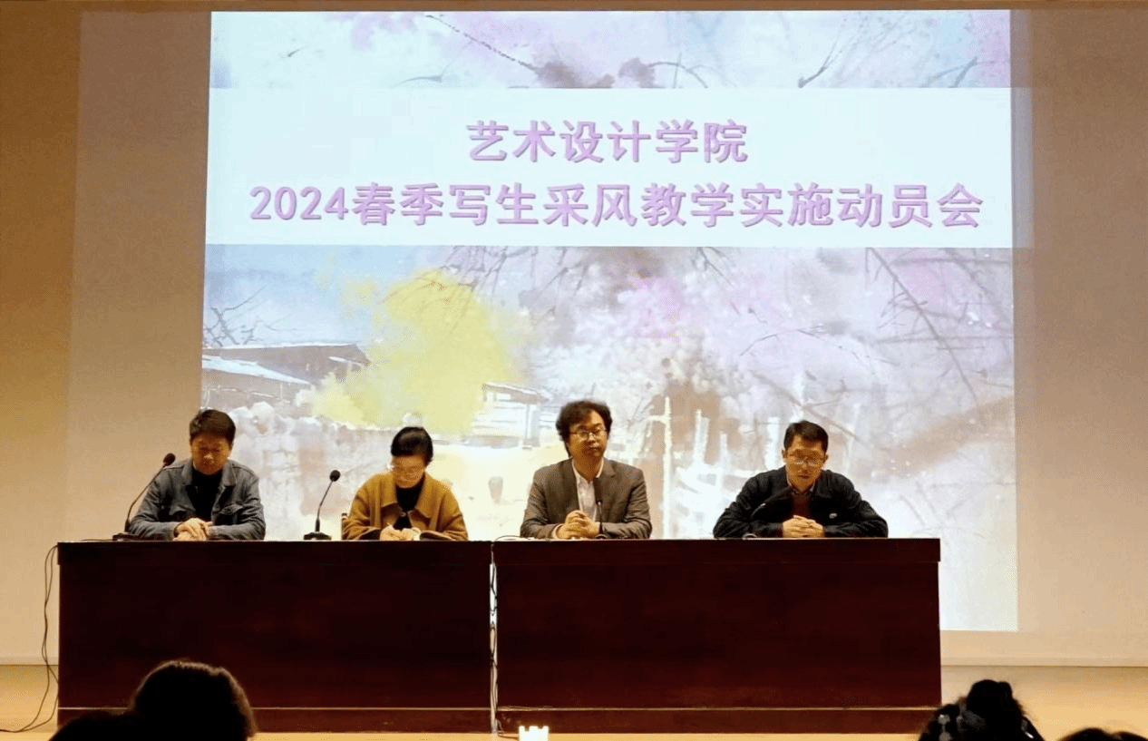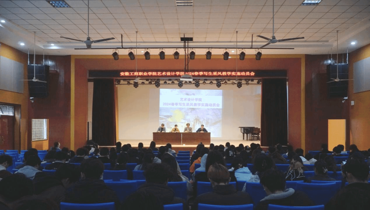3月27日中午在艺术设计学院庐阳校区时间剧场召开了2024年春季外出写生采风课程动员会。校党委委员、宣传统战部部长、艺术设计学院党总支书记孔成,艺术设计学院党总支副书记、院长魏芬,党总支副书记张乐,专业授课教师,辅导员及2023级写生学生参加会议。会议由教务科负责人瞿晨主持。