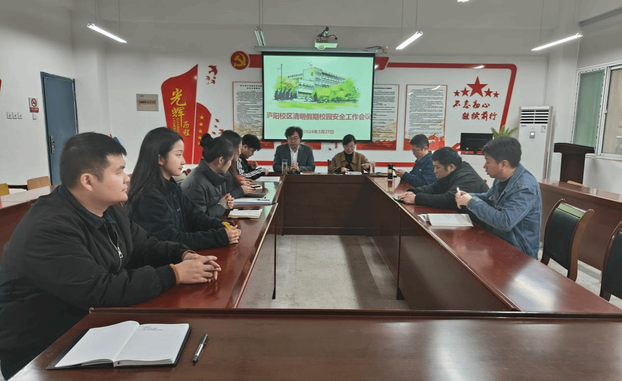 3月27日中午,艺术设计学院在庐阳校区致知楼三楼党员活动室召开2024年清明假期校园安全工作会议。艺术设计学院党总支副书记、院长魏芬,党总支副书记张乐,全体辅导员及行政人员参加会议。校党委委员、党委宣传统战部部长、艺术设计学院党总支书记孔成主持会议。