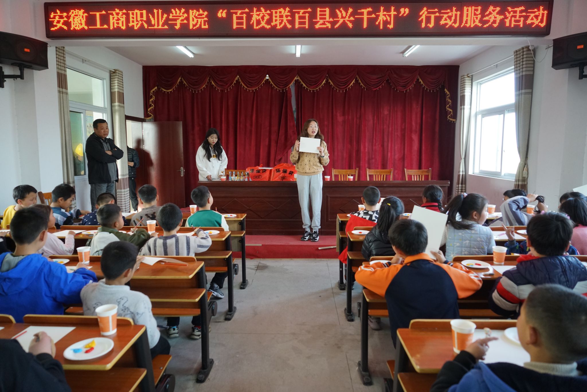 3月28日,在校团委副书记童乐、团委委员刘乐、艺术设计学院团总支书记赵文卿的带领下,我院志愿者赴太湖县城西乡三所乡村小学开展为期两天的“美育下乡”活动。本次活动旨在促进乡村小学美育发展,助力提升乡村美育水平,进一步推动乡村精神文明建设。