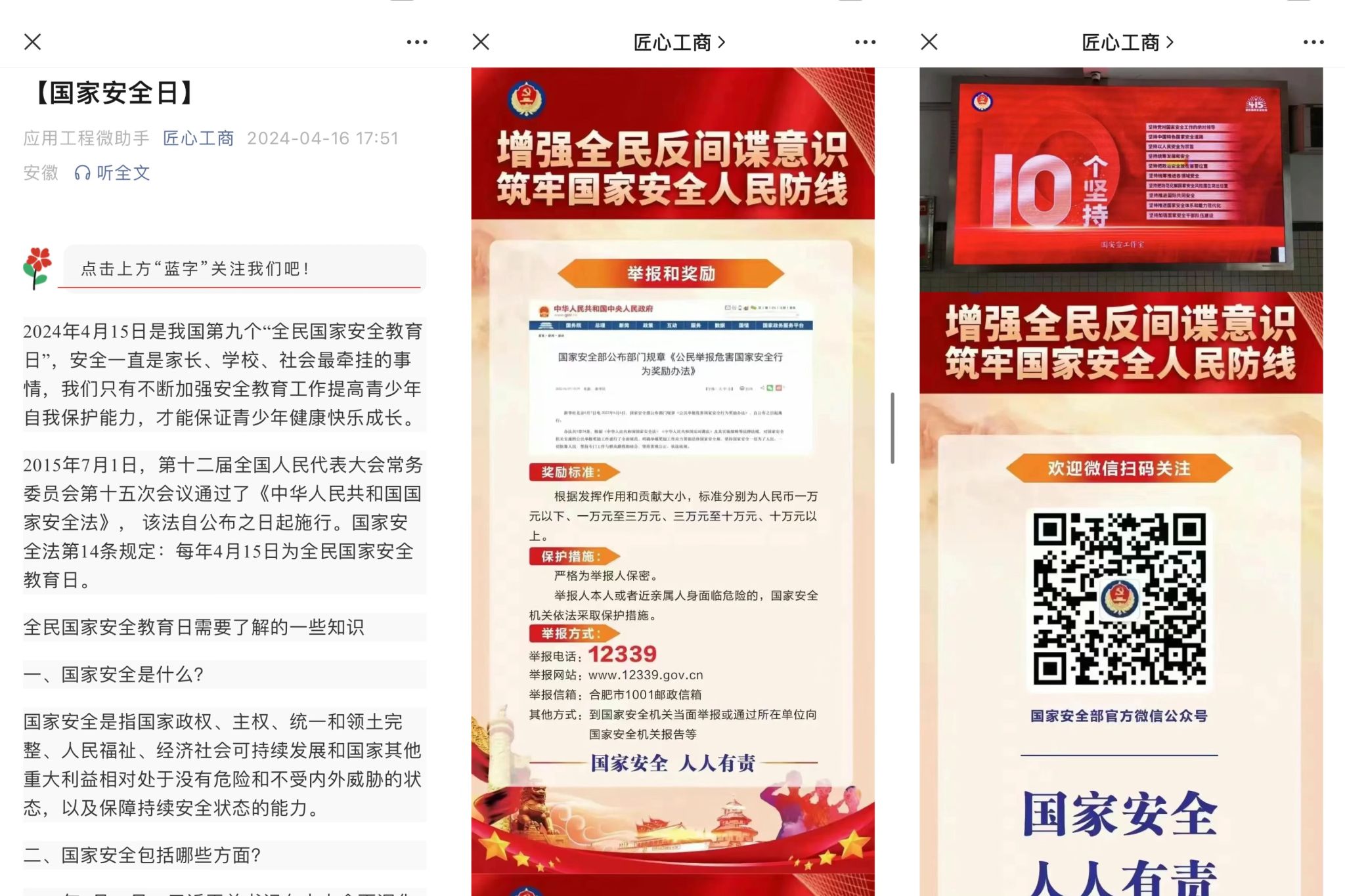 智能制造与汽车学院坚持以总体国家安全观为指导,始终把国家安全教育纳入学生的日常学习生活中,充分发挥新媒体宣传的强大力量,利用微信公众号、抖音号、视频号等新媒体平台,发布全民国家安全教育日主题教育微视频、图解等新媒体作品,转载权威部门、主流媒体相关宣传内容,宣传总体国家安全观、新时代国家安全成就,使广大师生通过直观的画面和生动的语言,更深入地了解国家安全知识,增强广大师生的国家安全意识,营造了践行总体国家安全观的良好舆论环境和浓厚氛围。