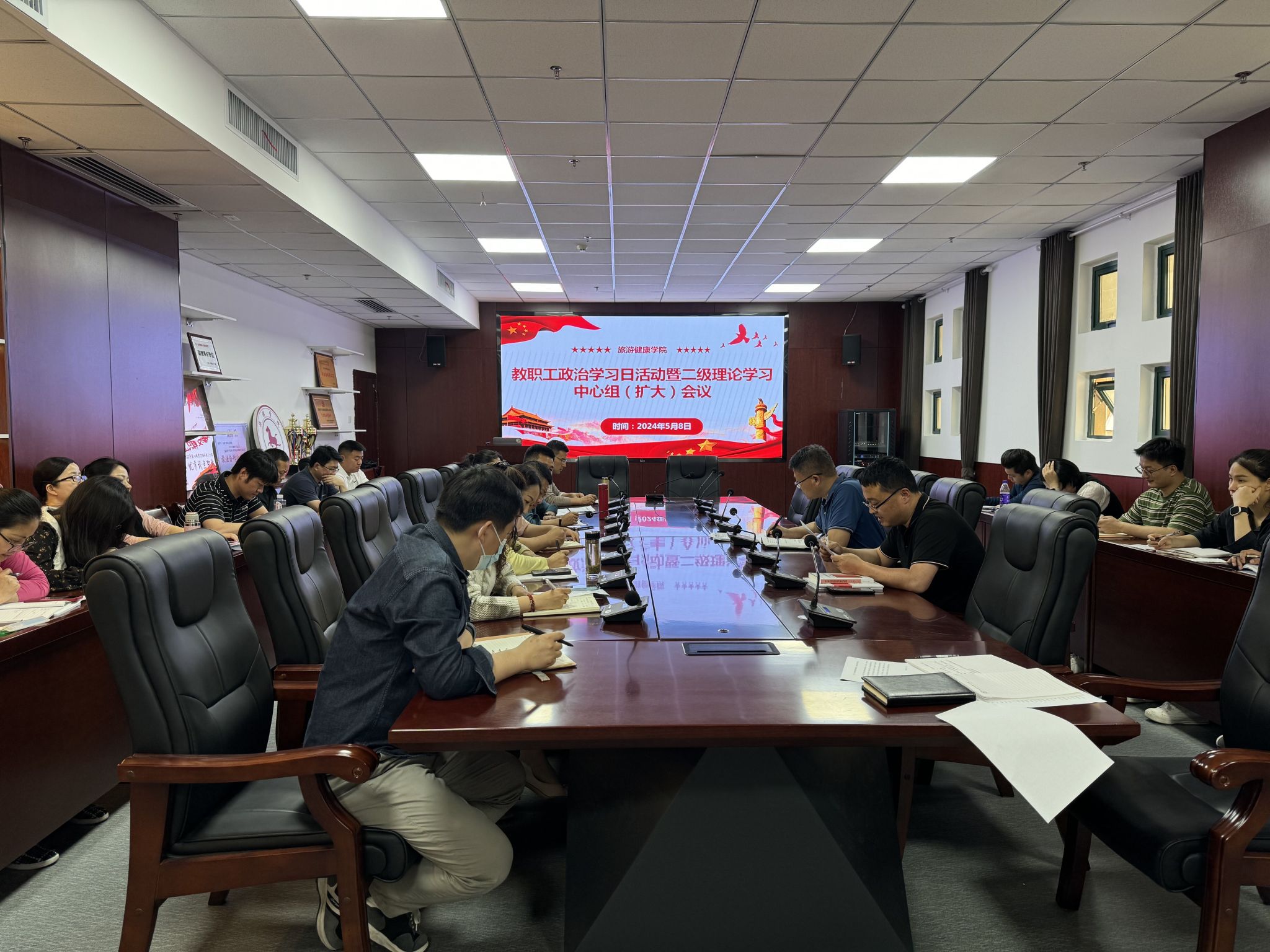 5月8日中午,旅游健康学院召开二级中心组(扩大)学习暨教职工政治理论学习会议,会议由党总支书记杨锐主持,全体教职工参加学习。