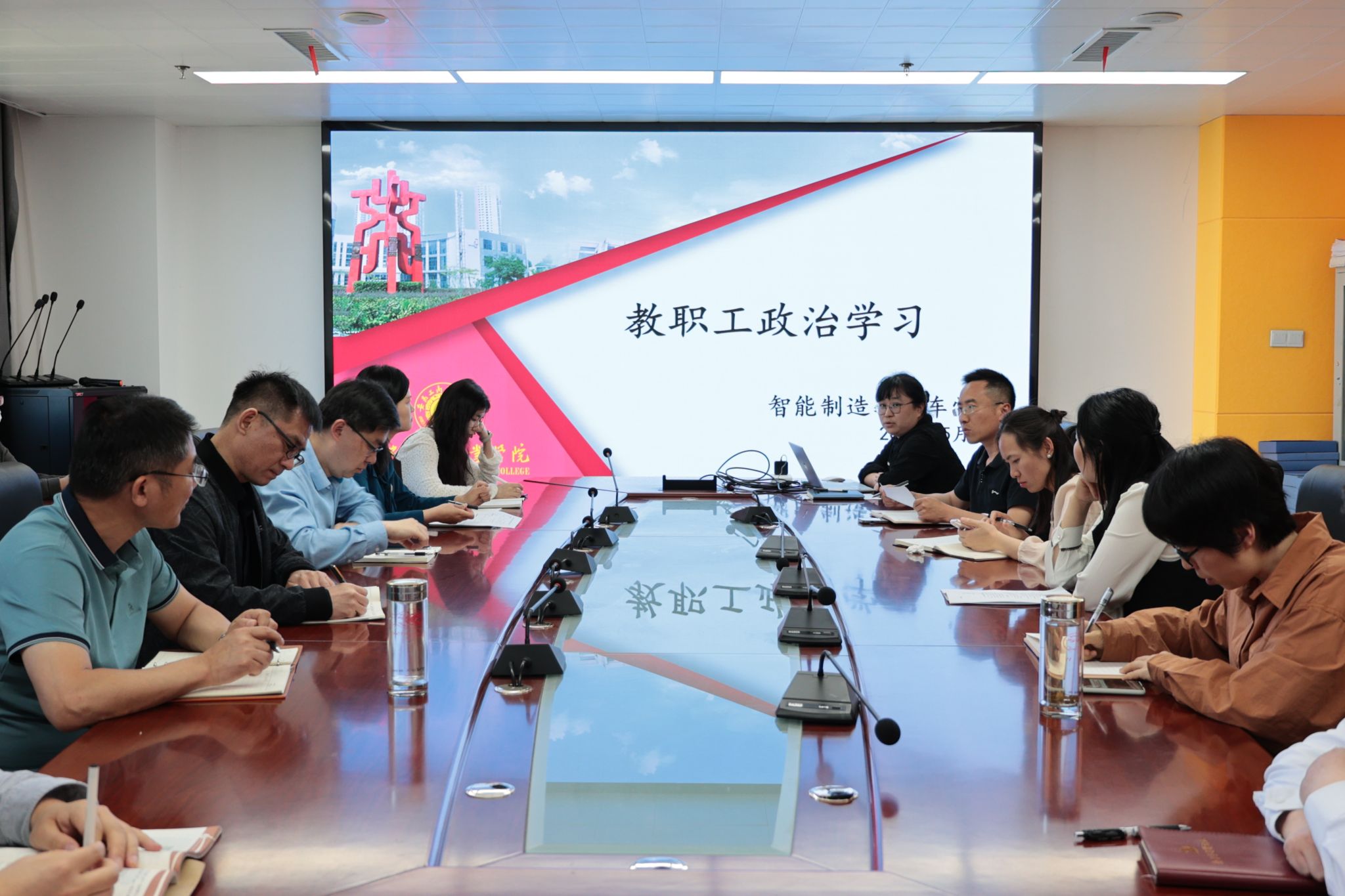 根据学校统一部署,5月8日下午,智能制造与汽车学院党总支在综合楼第六会议室召开教职工政治学习会议,智能制造与汽车学院全体教职工参加,会议由学院党总支副书记盖昊宇主持。