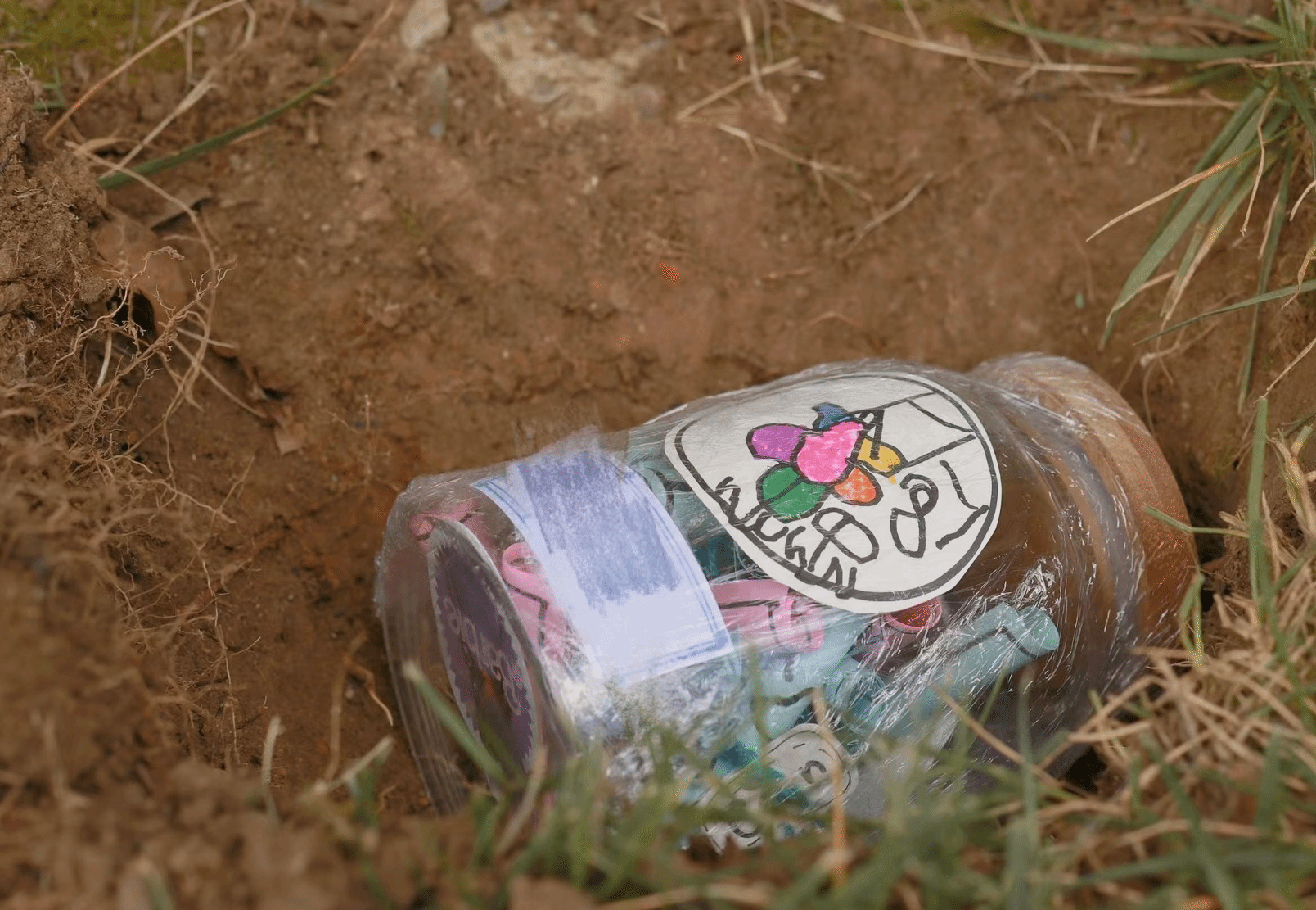 为了使本次活动充满仪式感,学院为同学们精心挑选了纪录心声的载体—“时光胶囊心愿瓶”。活动开始前,各班级心理委员为同学们讲解了“时光胶囊”的概念,组织同学们在便签纸上写下自己对未来的期许或目前面临的心理困扰。随后,在全班同学的合力下,大家共同将各班级的“时光胶囊瓶”埋进土地里,旨在“将坏情绪留给泥泞,把未来期许给大地”。活动结束后,大家约定一年后重新挖掘,再投送回同学手中,让思想跨越时光隧道,通过时空的延伸寄托希望。