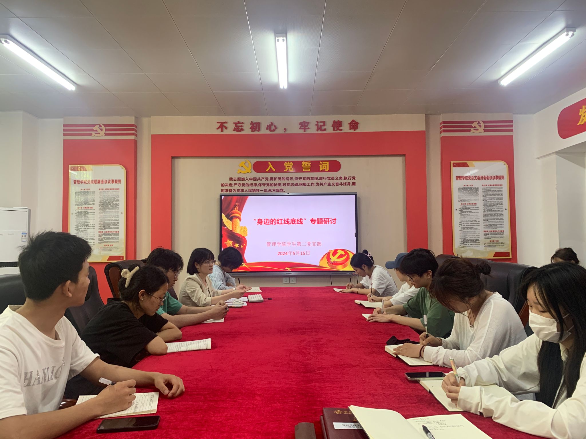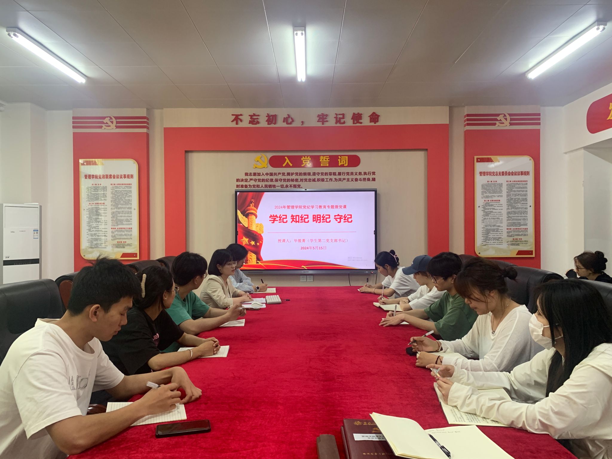 为切实增强党纪学习教育的针对性、实效性,5月15日中午,管理学院学生第二党支部依托主题党日在支部范围内开展“一片一课一研讨”党纪学习教育专题活动,通过警示教育片、微党课、主题研讨形式推动党规党纪入脑入心、见行见效。支部全体师生党员、入党积极分子代表共计30余人参加专题学习。