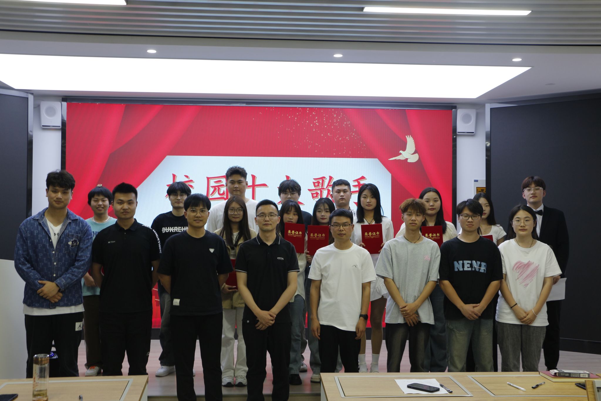 比赛现场,每一位参赛选手都精神饱满、热情洋溢,用充满魅力的歌声为现场观众带来一场视听盛宴。选手们或深情款款,或激昂高亢,演绎了《其实都没有》《不再犹豫》《如愿》《夜空中最亮的星》等多种风格的歌曲,他们用音符编织青春,用歌声传递情感,表达了对音乐的热爱,展现了青年大学生的风采和才华。最后,经过激烈地角逐,成功评选出本年度管理学院“校园十大歌手”。