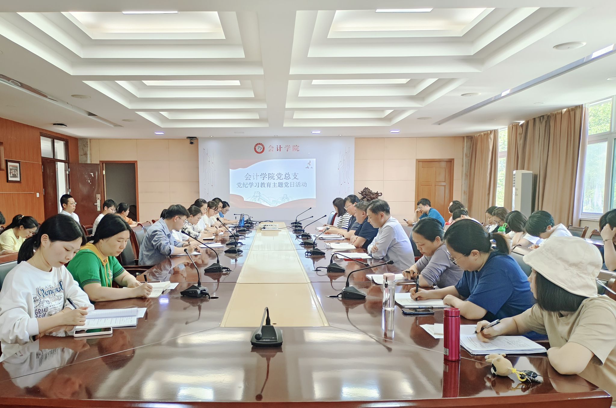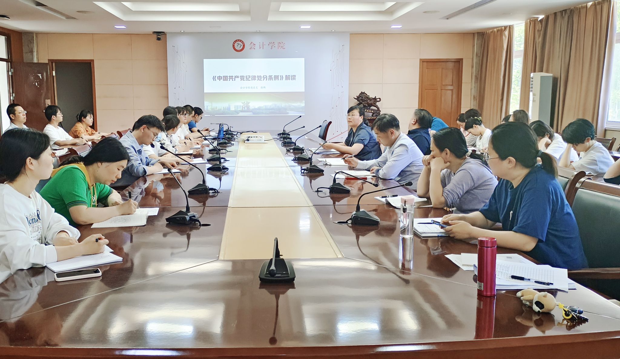 为进一步提升党员党性修养、深化党纪学习教育,会计学院党总支于5月15日下午在明德楼二号会议室举行了党纪学习教育主题党日活动,旨在增强党员廉洁自律的意识和能力。活动由党总支书记赵艳主持,会计学院全体教师党员参与活动。