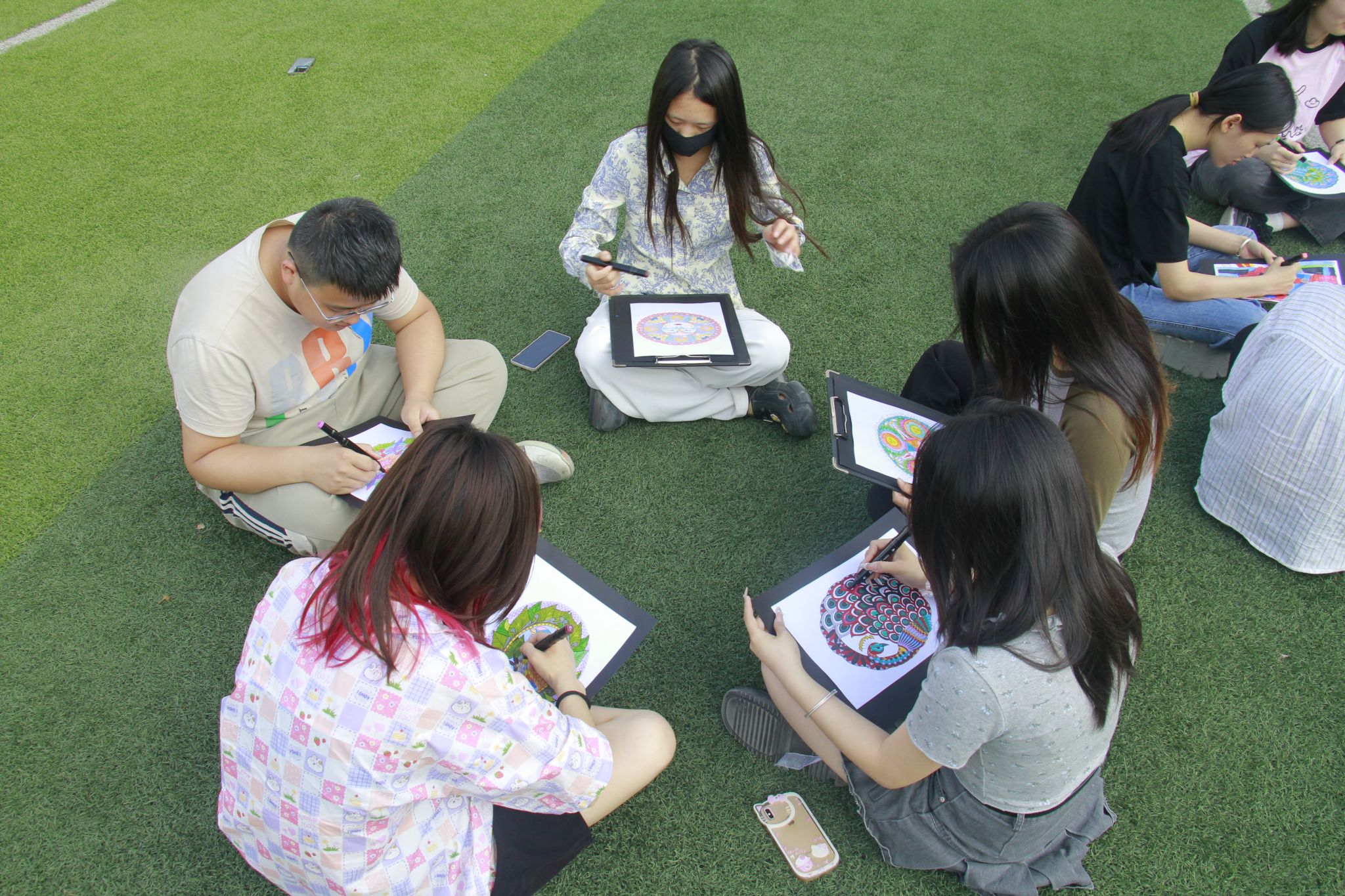 活动伊始,学院为大家精心准备了彩笔和专用的曼陀罗画纸,在绘画前,由心理专员引导同学们进行了简短的冥想,帮助大家调整状态,并鼓励大家抛开束缚,自由地表达内心世界。随着规则的介绍完毕,同学们便开始了他们的曼陀罗创作之旅。在整个绘画的过程中,同学们在无声中与内心深处的自己进行了一次深刻的对话。