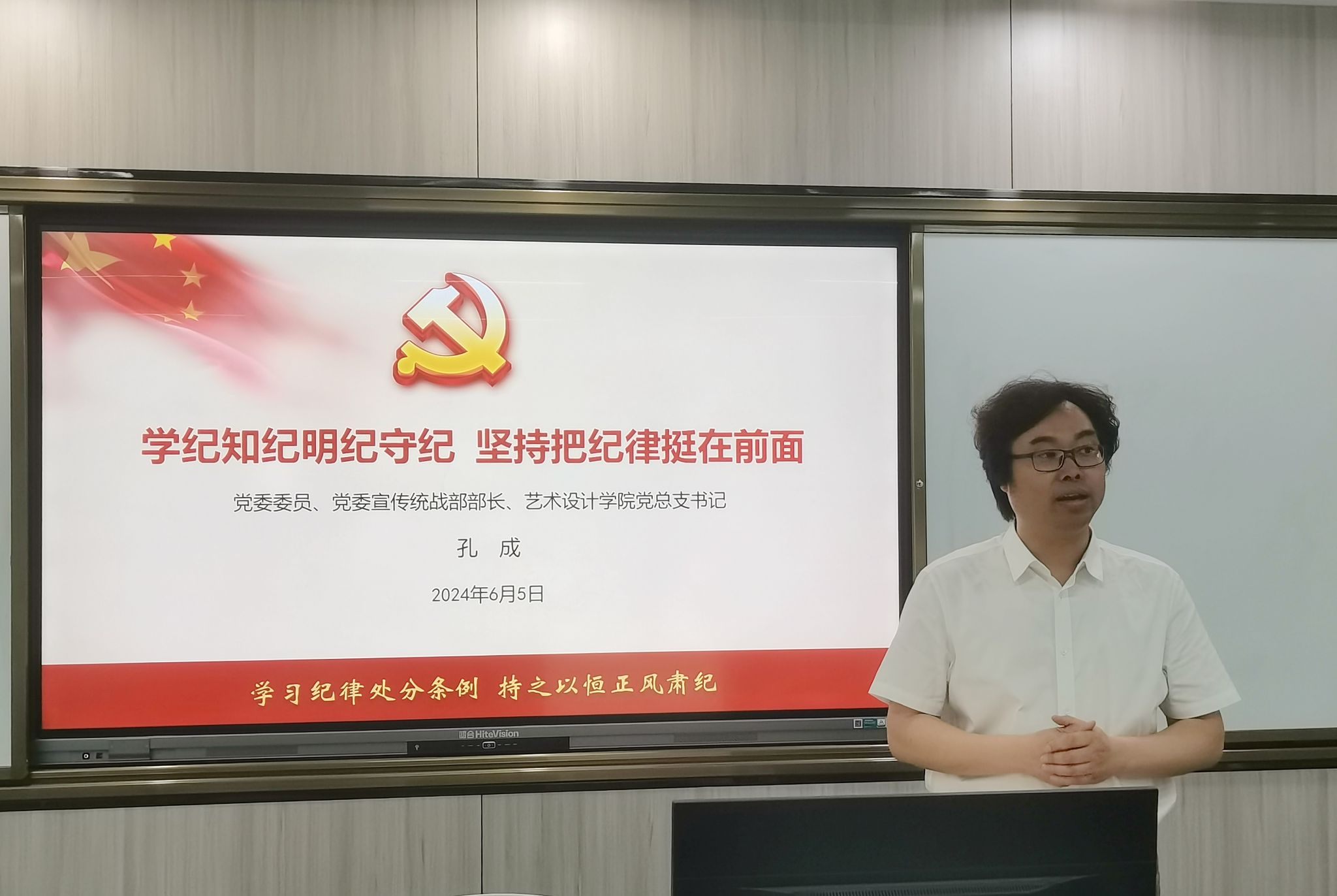 为扎实推动党纪学习教育,根据《安徽工商职业学院党纪学习教育读书班方案》要求,6月5日下午,艺术设计学院党总支在致知楼Z204智慧教室举行了党纪学习教育读书班开班暨第一次集中学习。校党委委员、党委宣传统战部部长、艺术设计学院党总支书记孔成,艺术设计学院党总支副书记张乐及教工党员参加学习。