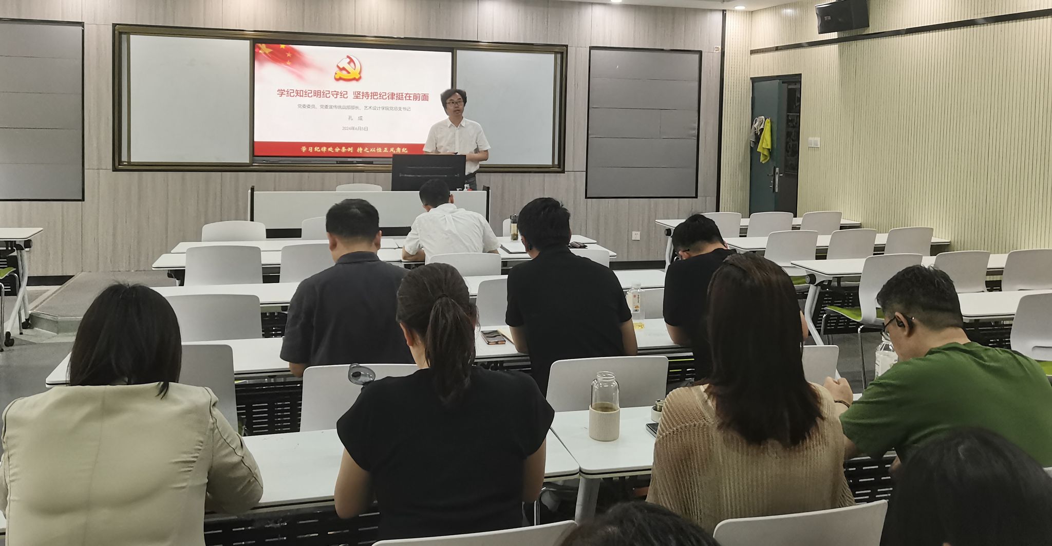 集中学习环节,孔成作《学纪知纪明纪守纪 坚持把纪律挺在前面》专题党课。他结合《条例》历次修订情况、新《条例》突出特点、《条例》部分条文和典型案例,给学院全体党员在深入理解和准确把握党的纪律方面带来了深刻的启发和思考,对学院推进全面从严治党、党风廉政建设和反腐败斗争,具有十分重要的指导意义和实践意义。