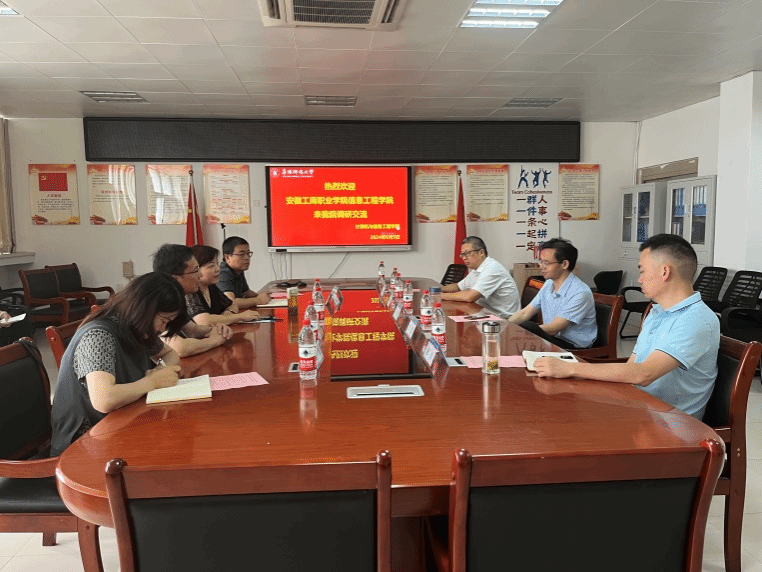 近日,为加强专升本联合培养学生的思想政治教育,提高党团组织的凝聚力和战斗力。信息工程学院率联培班部分师生赴阜阳师范大学计算机与信息工程学院就党团活动相关事宜展开深入交流。参加交流活动的有阜阳师范大学计算机信息工程学院党委书记吴尝、院长王先超,安徽工商职业学院信息工程学院党总支书记张静雯,院长范生万及专业相关部分老师、辅导员和学生。