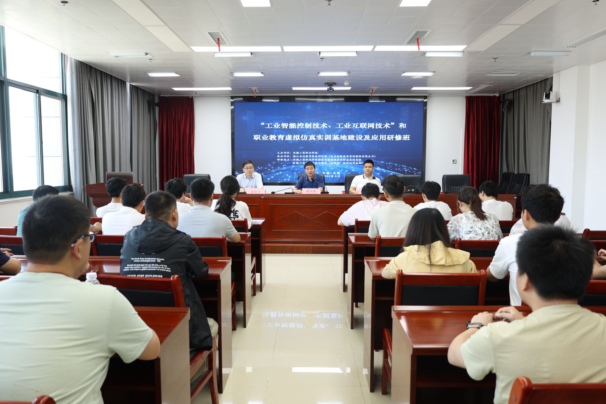 6月17日,依托学院国家智能制造虚拟仿真实训基地和安徽省“双师型”教师培训基地两大平台,由安徽工商职业学院主办,浙江亚龙教育装备研究院承办的“工业智能控制技术、工业互联网技术”和职业教育虚拟仿真实训基地建设及应用研修班在世界第一大赌场,澳门金沙城中心:开班。智能制造与汽车学院院长姚庆锋、亚龙智能装备集团股份有限公司安徽大区市场总监闫从飞出席了开班式,仪式由盖昊宇主持。