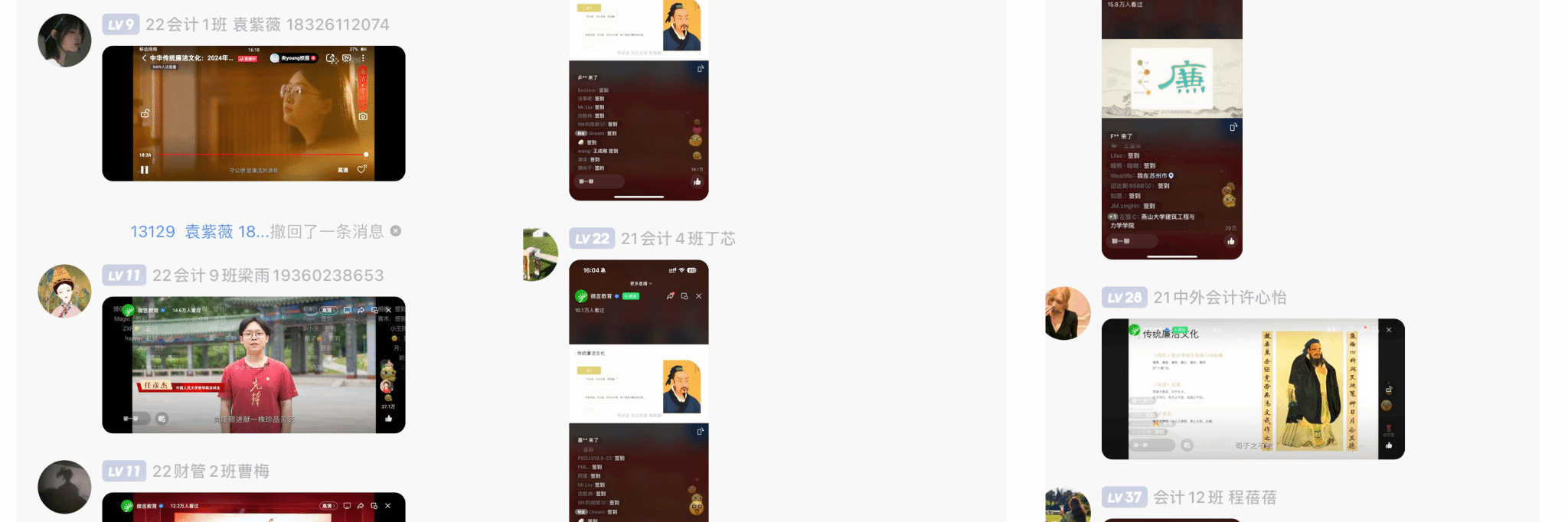 2024年6月21日下午16时,会计学院党总支落实学校组织人事处工作安排,组织师生党员采取线上线下融合的方式,共同观看了2024年高校党组织示范微党课——《中华传统廉洁文化》。本次微党课汇集了中国人民大学、北京师范大学、华东政法大学等知名学府的主要领导、学者、教师及学生党员代表的智慧与力量,共同为师生党员们带来了一场廉洁文化教育的深刻洗礼。