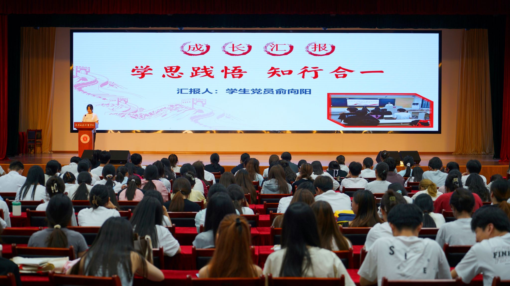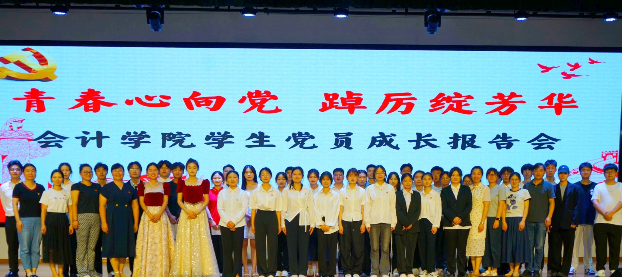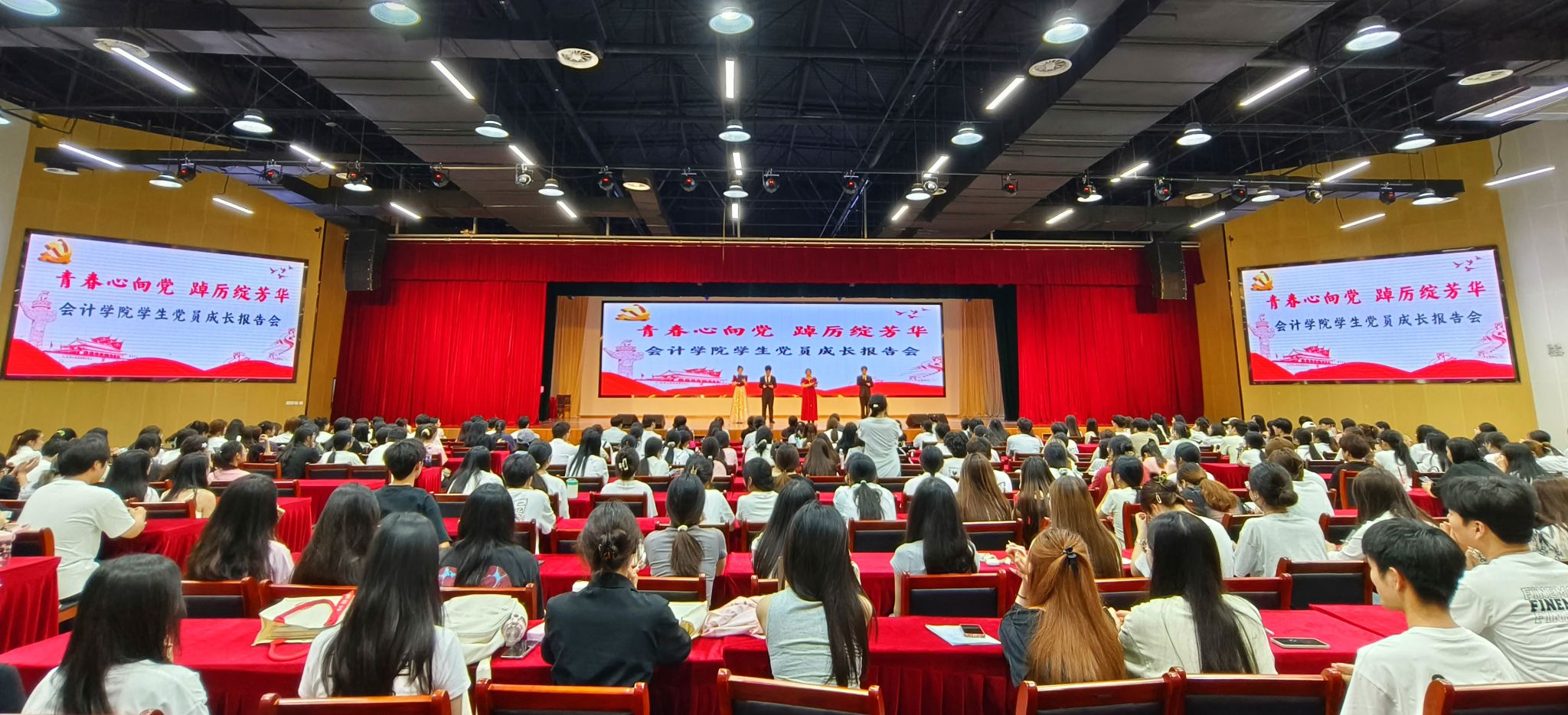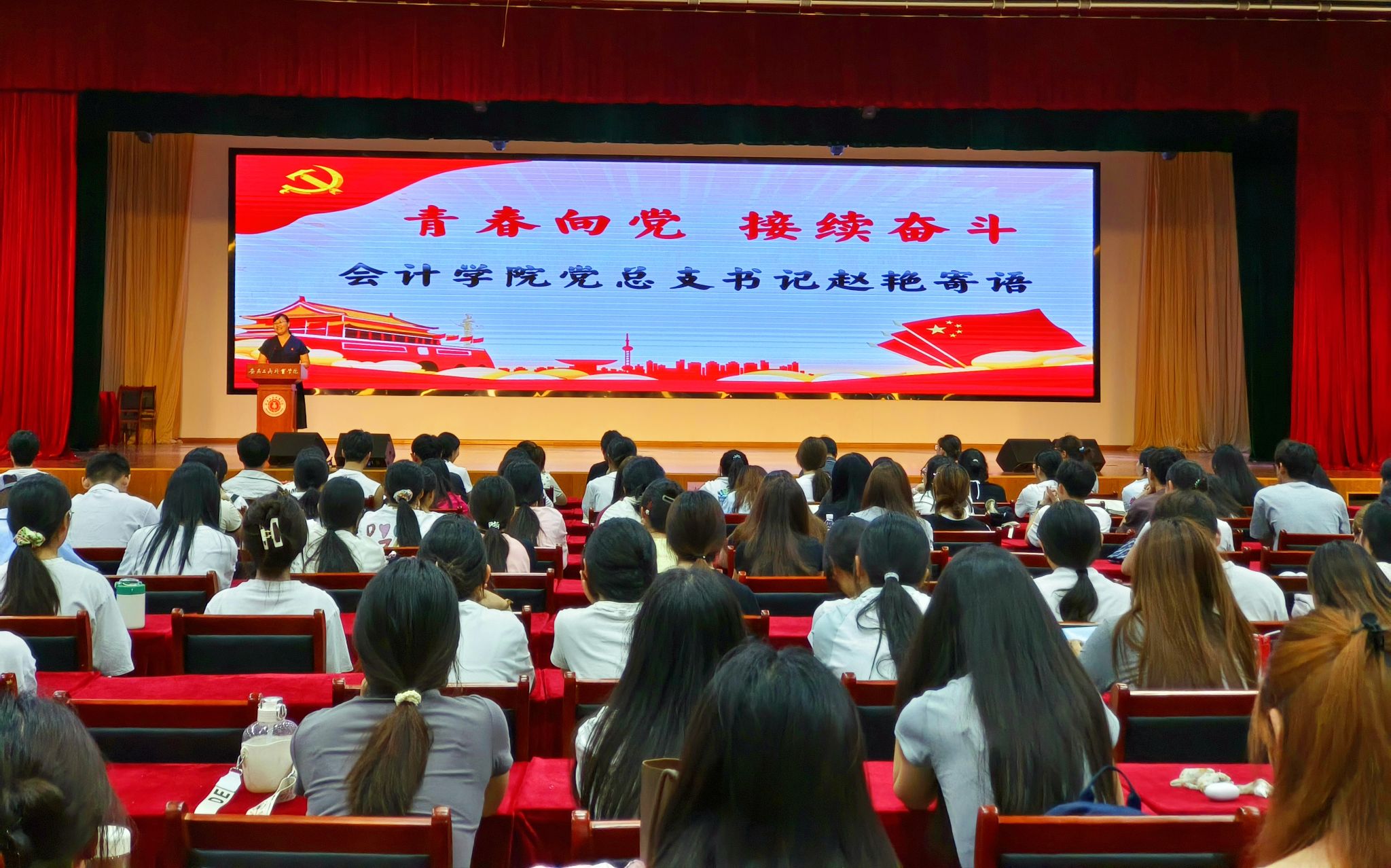 6月25日中午,会计学院在大学生活动中心举行以“青春心向党,踔厉绽芳华”为主题的学生党员成长报告会。党总支书记赵艳、党总支副书记李峰、全体学生党支部书记、辅导员老师、在校学生党员、党员发展对象及300余名入党积极分子共同参与了此次活动。