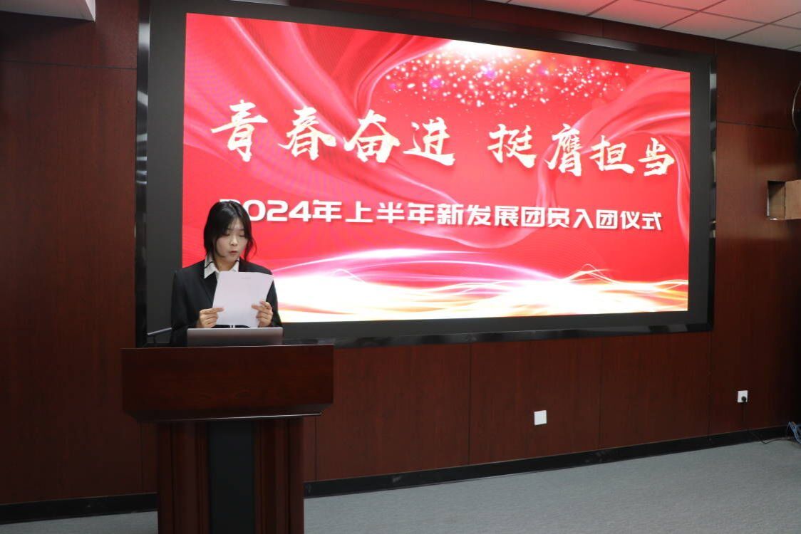 入团仪式在庄严的国歌声中拉开帷幕。刘燕宣读了新发展团员名单;学院党团组织负责人分别为新团员颁发团徽徽章和团员证;2024年上半年新发展的22名团员进行了庄严的入团宣誓;2023级旅游管理4班施舒娴作为新团员代表发言;2022级健身指导与管理2班姜含代表优秀团员发言。