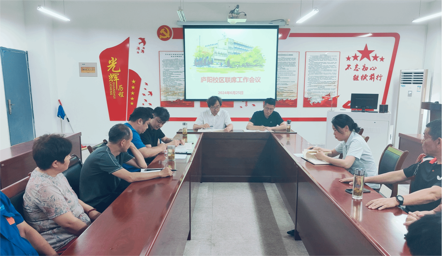6月25日下午庐阳校区召开6月份联席工作会议。本次会议由校党委委员、宣传统战部部长、艺术设计学院党总支书记孔成主持。艺术设计学院党总支副书记张乐及后勤管理处、保卫处、信息化建设与发展处、明德物业公司、大佳一食堂、神之盾保安公司等相关负责人参会。