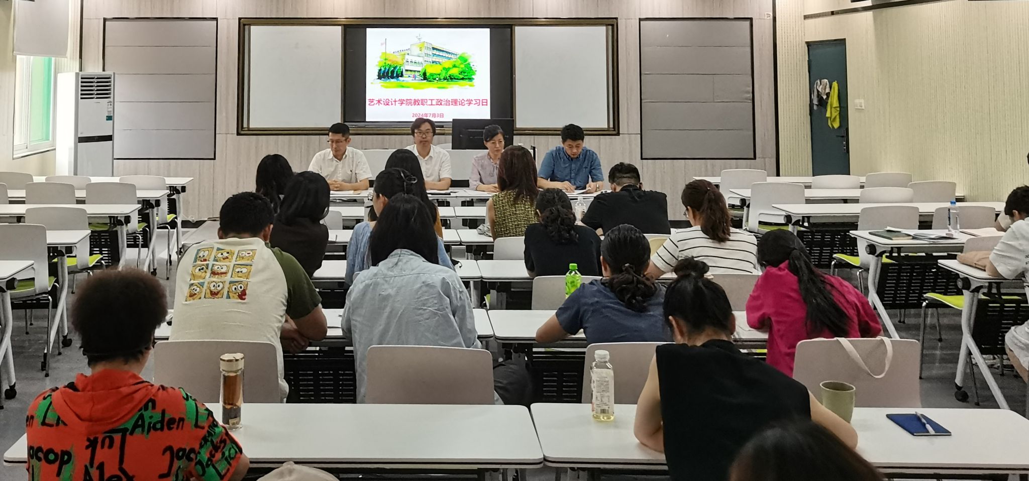 7月3日下午,艺术设计学院党总支在致知楼Z204智慧教室召开七月份教职工政治理论学习会议,集体学习习近平总书记在中共中央政治局第十五次集体学习时的重要讲话精神,习近平总书记在全国科技大会、国家科学技术奖励大会上的重要讲话精神,习近平总书记给中国科学院院士、清华大学教授姚期智回信精神,习近平总书记对防汛抗旱工作作出的重要指示精神;学院党总支纪检委员瞿晨领读《高校系统违纪典型案例选编》。校党委委员、党委宣传统战部部长、艺术设计学院党总支书记孔成,艺术设计学院党总支副书记、院长魏芬,艺术设计学院党总支副书记张乐及全体教职工参加会议。