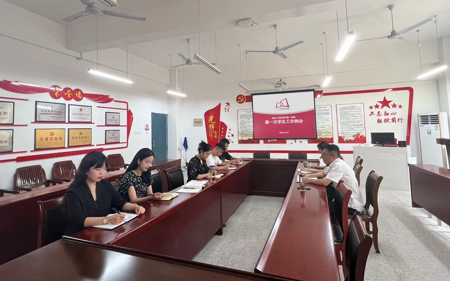 为全面贯彻落实立德树人根本任务,凝心聚力做好2024-2025第一学期学生管理工作,艺术设计学院于8月31日召开本学期第一次学生工作例会。会议由学院党总支副书记张乐主持,全体专兼职辅导员参会。