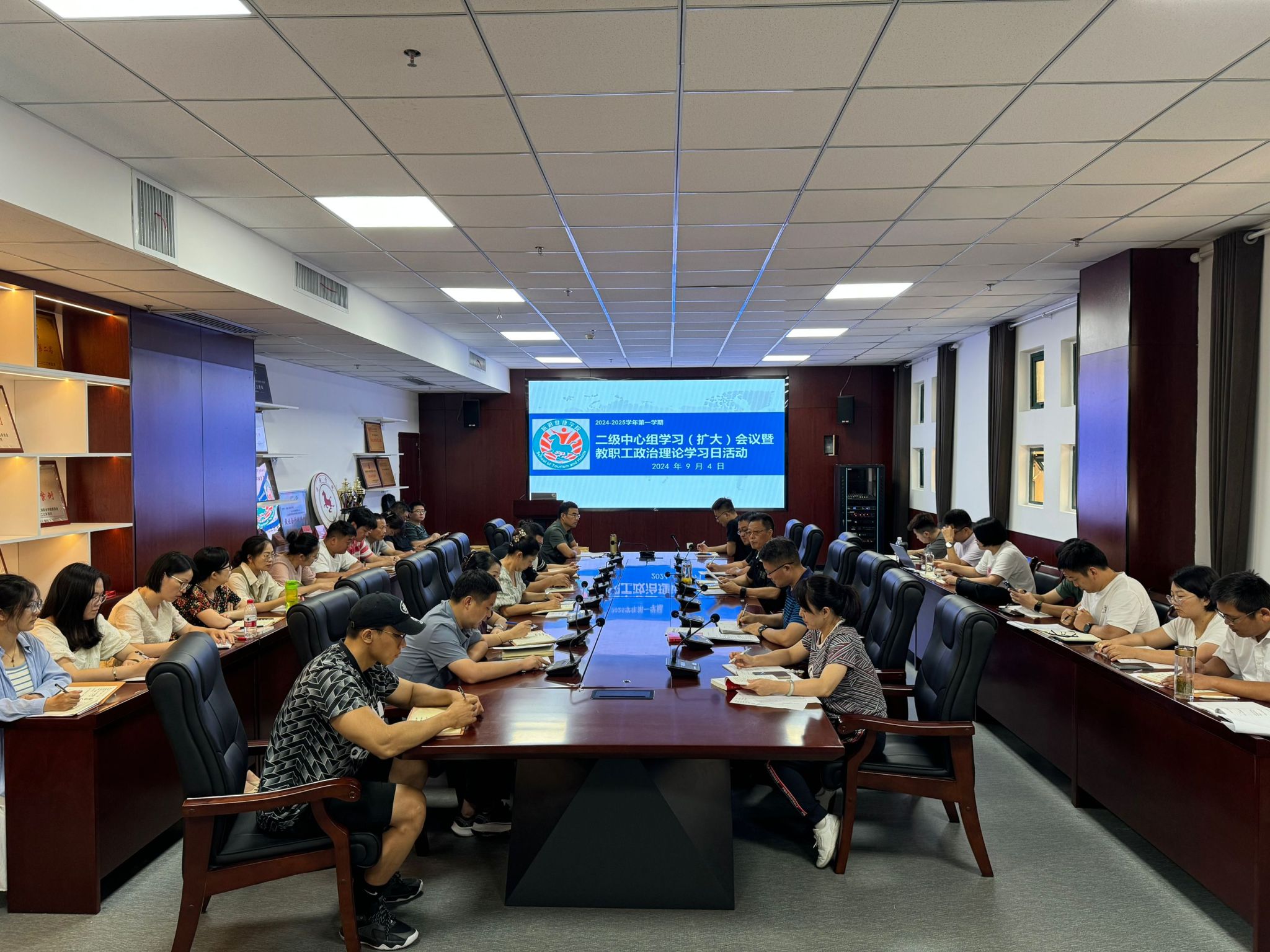 9月4日下午,旅游健康学院党总支在学院会议室召开二级理论学习中心组(扩大)会议暨教职工政治理论学习,会议由党总支书记杨锐主持,全体教职工参加会议,校党委委员、纪委书记吴松飞到会指导。