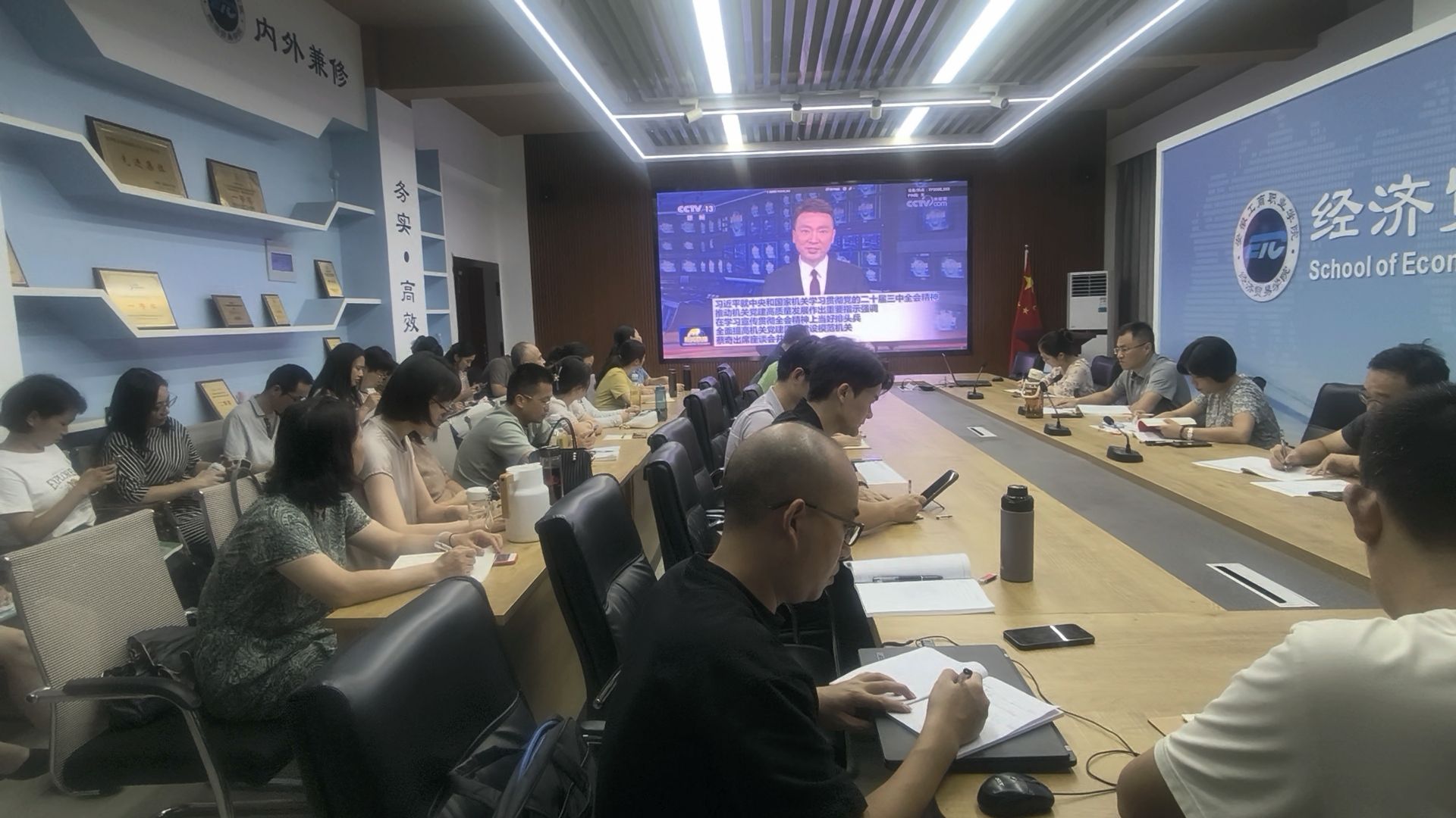 9月4日下午,经济贸易学院党总支在5楼教师能力提升中心召开理论学习中心组学习(扩大)会议,会议由党总支书记边昊主持,全体教职工参加会议。