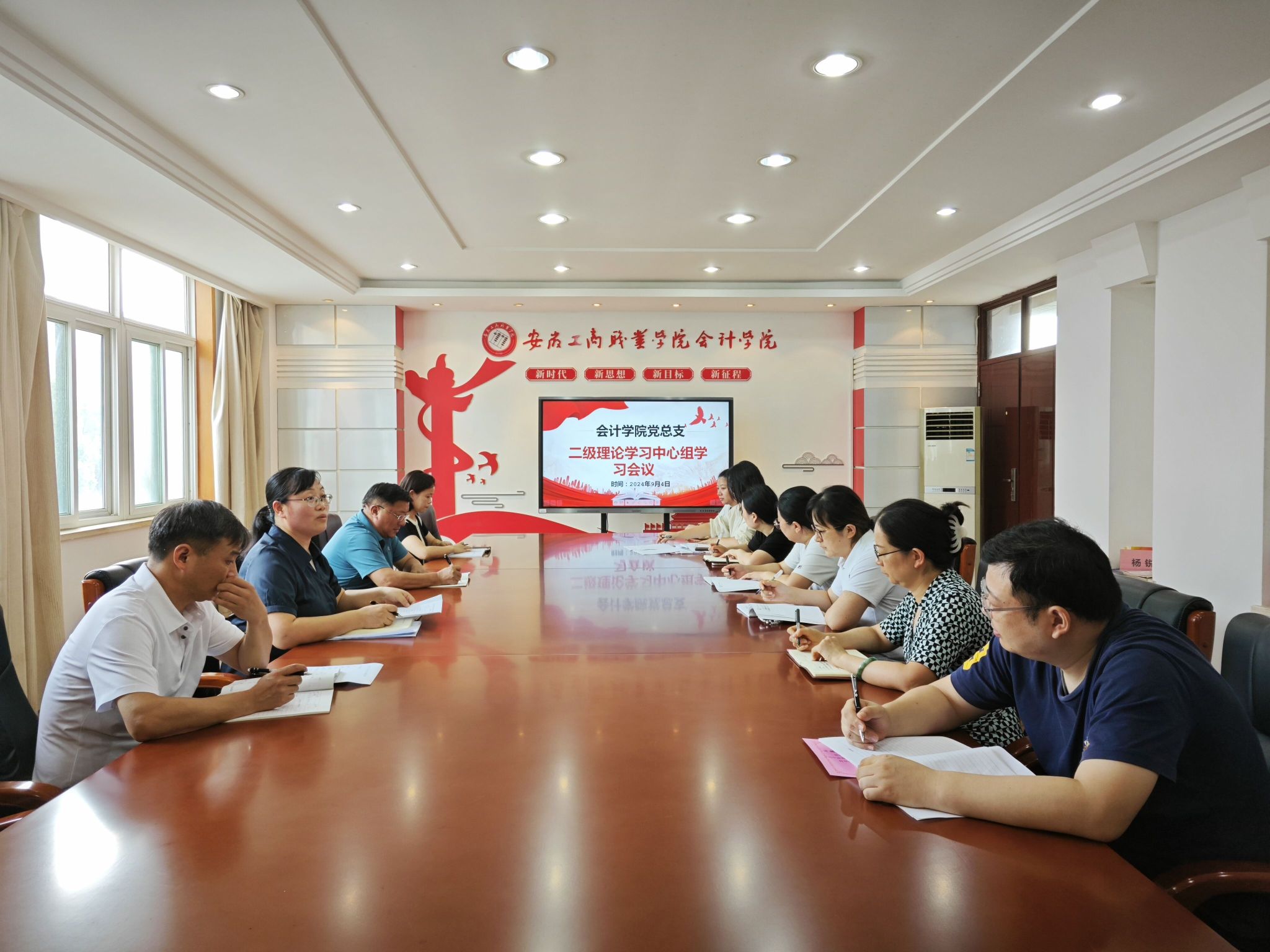 9月4日下午,会计学院党总支在明德楼二楼党建会议室召开二级理论学习中心组(扩大)学习会议暨党纪学习教育总结交流会议。学院党总支委员和党支部书记全体参会,会议由党总支书记赵艳主持。