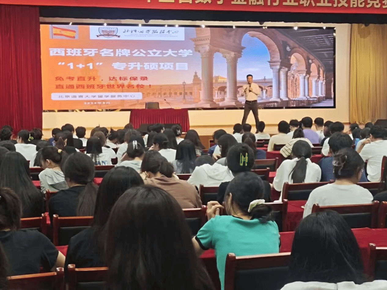 随后,国际交流与继续教育学院邀请北京语言大学北语留学服务中心国际教育合作部部长戴凯博士为2022级毕业班学生进行了毕业生职业发展暨专升硕宣讲会,戴凯简要介绍了国际化教育项目的总体情况,包括项目流程、培养模式、申请细节、就业前景等,并针对学生们关心的留学要求、项目费用及出国留学后的发展等问题做了详细介绍。
