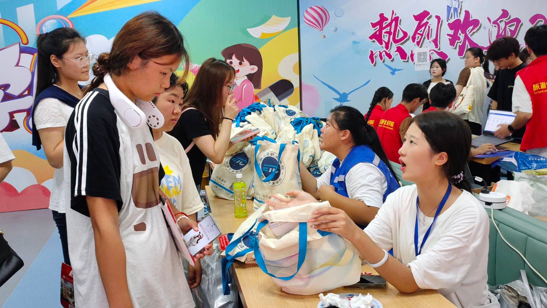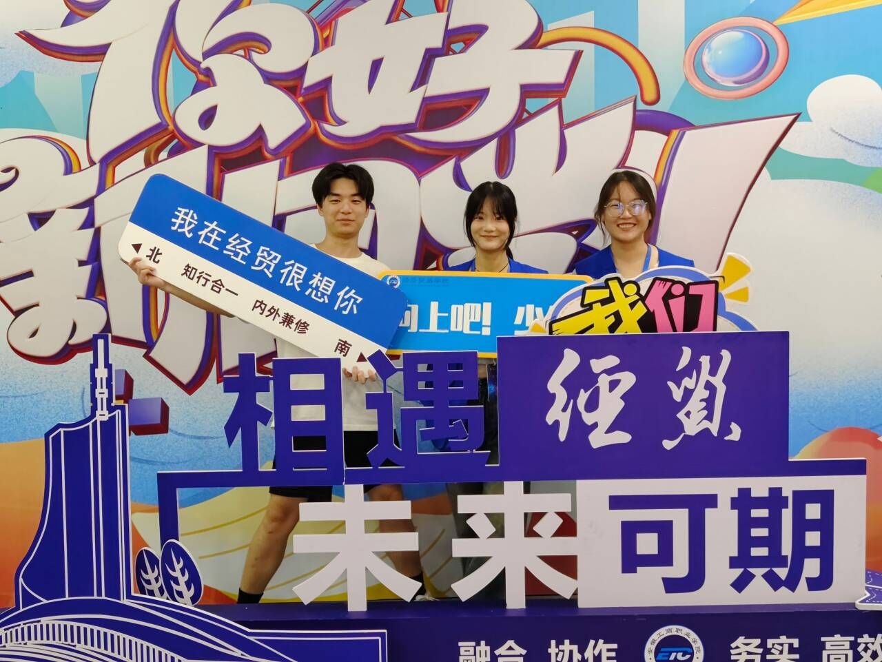 在新生“迎新季”和入学“关键期”,经济贸易学院组织学生干部和党员担任迎新志愿者,主动作为、用心服务、送去关怀,让新生在入学第一天感受到党组织的温暖。迎新现场创意满满、亮点纷呈,“相遇经贸 未来可期”字样的模型矗立现场,渲染出浓浓的经贸文化。学院组织教师和学生干部秩序井然的安排学生报到各项事宜、发放装有定制纪念品的爱心大礼包、为新生答疑解惑,切实做到“新生报到全过程,志愿服务始终在线”。校园内,新生和他们的亲友团游览美丽校园,品尝食堂美食,与迎新现场师生交流,在迎新点合影留念。“我们进校后好多志愿者帮忙搬行李,经济贸易学院的服务非常贴心和周到,孩子在这里上学我们很放心”,一位新生家长说道。
