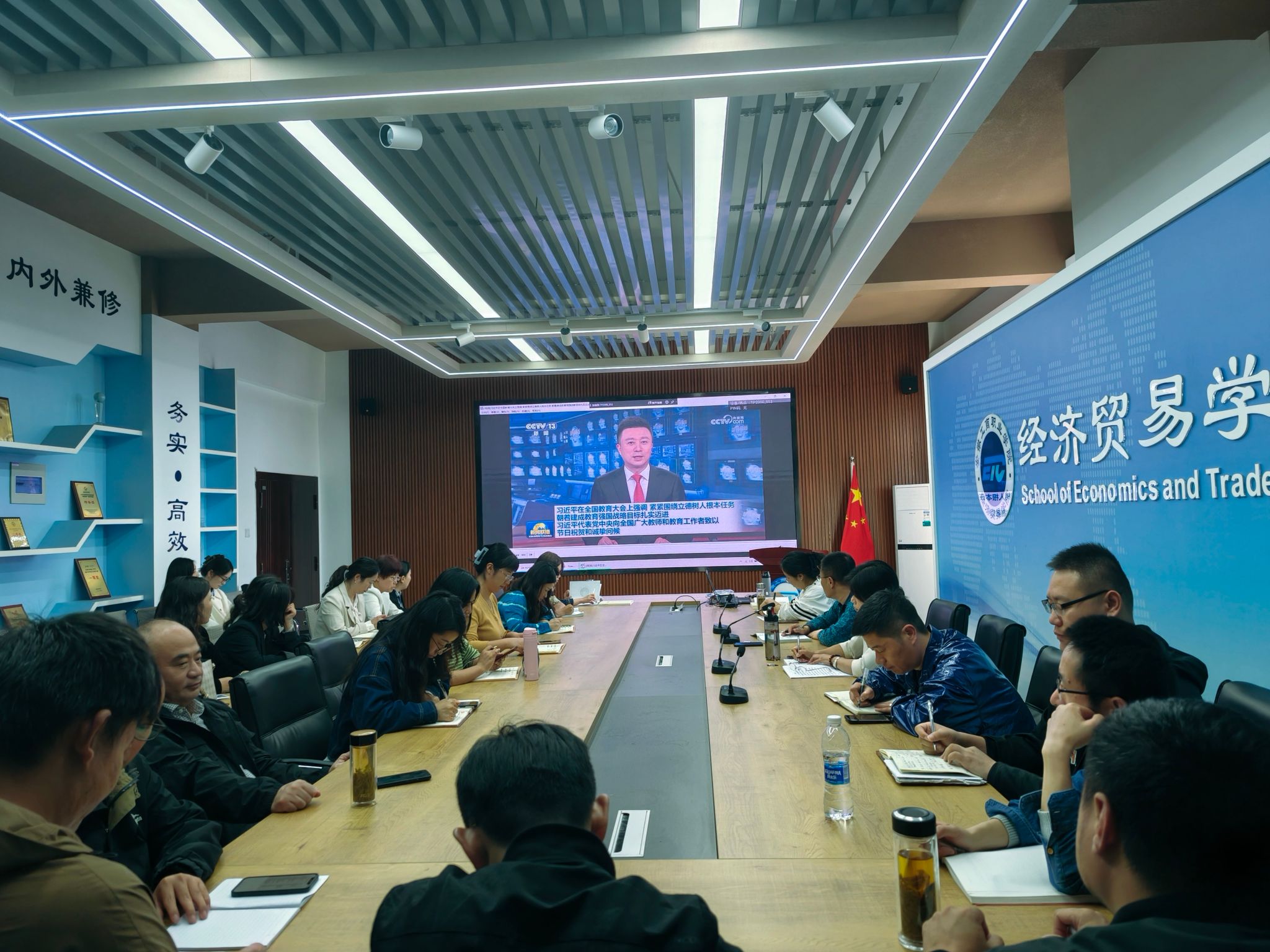 10月9日下午,经济贸易学院党总支在5楼教师能力提升中心召开理论学习中心组学习(扩大)会议,集体学习习近平总书记在全国教育大会上的重要讲话精神和习近平总书记在甘肃、陕西宝鸡考察时的重要讲话精神。会议由党总支书记边昊主持,全体教职工参加会议。