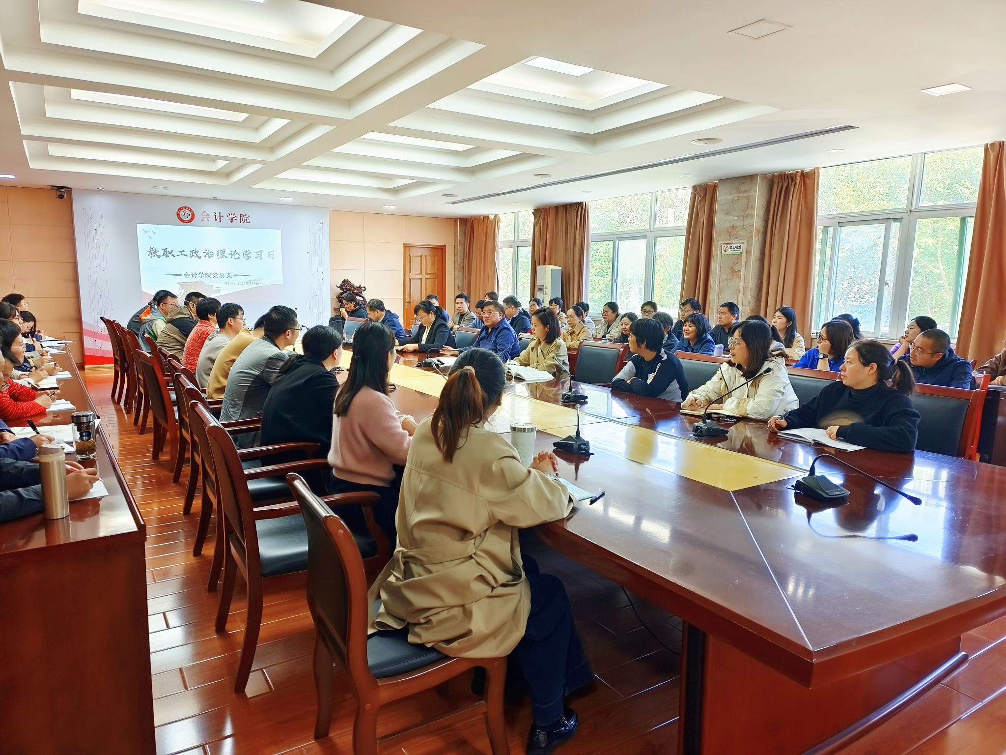 11月6日,会计学院党总支于明德楼二楼二号会议室举行了11月份二级理论学习中心组学习(扩大)会议及教职工政治理论学习会议。此次会议由党总支书记赵艳主持,会计学院全体教职工积极参与,共同提升政治素养和理论水平。