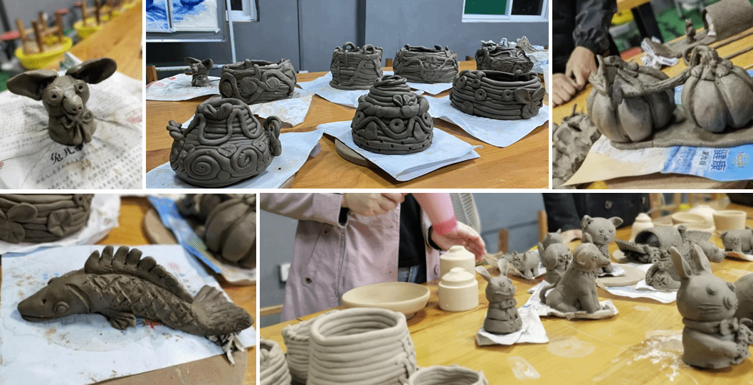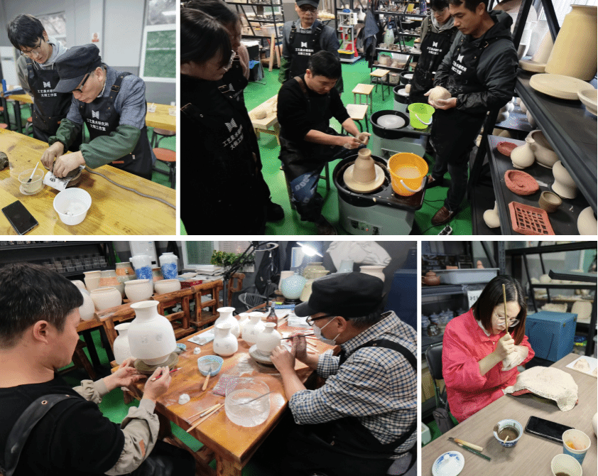 学员现场演练场景:盘条、捏塑、拉坯、修坯、模制、施釉