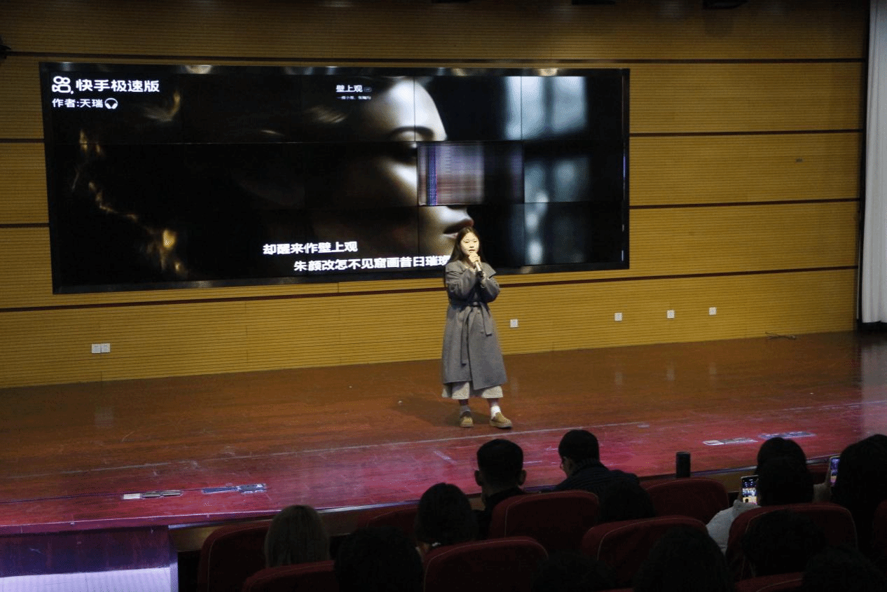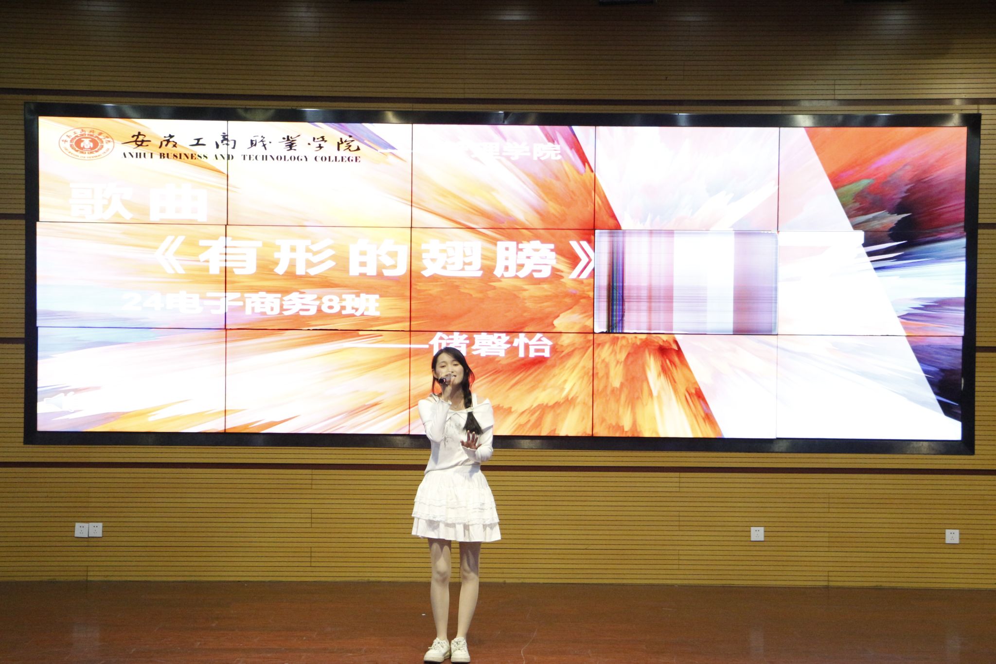 赛场上,参赛选手们以饱满的精神状态参与比赛,尽显青春本色。参赛节目相比往届更是丰富多彩,除唱歌、舞蹈、小品、朗诵,首次有同学表演配音、脱口秀等类型的节目。比赛开始后,各同学依次上台表演,其中王犇同学带来的脱口秀表演以幽默诙谐的语言和生动形象的表演将现场气氛推向高潮,观众笑声不断,掌声雷动;储磬怡同学的深情演唱《有形的翅膀》打动无数观众的心,她用真挚的情感征服评委和观众,赢得阵阵掌声。