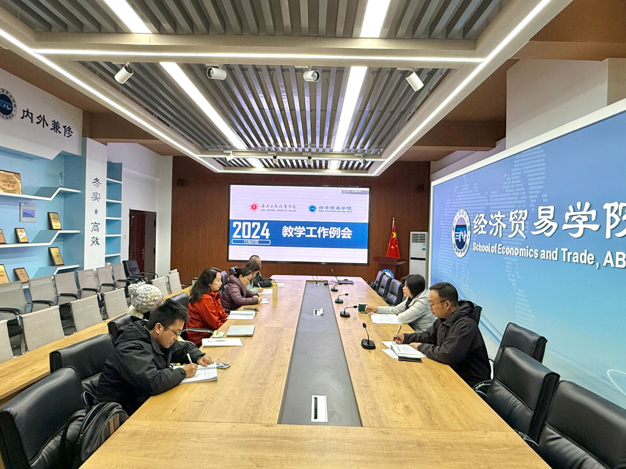 11月27日中午,经济贸易学院在学院会议室召开教学工作会议。会议由院长张颖主持,副院长张键、各教研室主任、专业负责人、教务科工作人员参会。