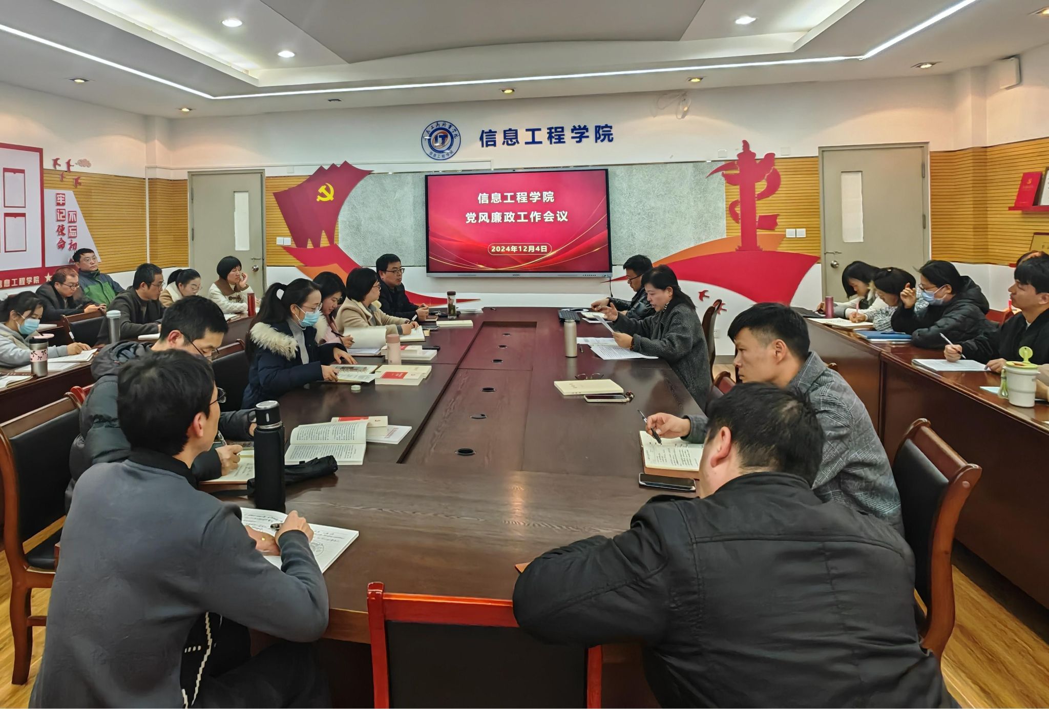 为进一步加强师德师风建设,培养高素质教师队伍,建设良好教风学风,营造信息工程学院风清气正的氛围,12月4日下午,信息工程学院召开党风廉政建设专题会议暨2024年度师德师风专题工作会议。学院全体教师参加会议。会议由党总支书记张静雯主持。