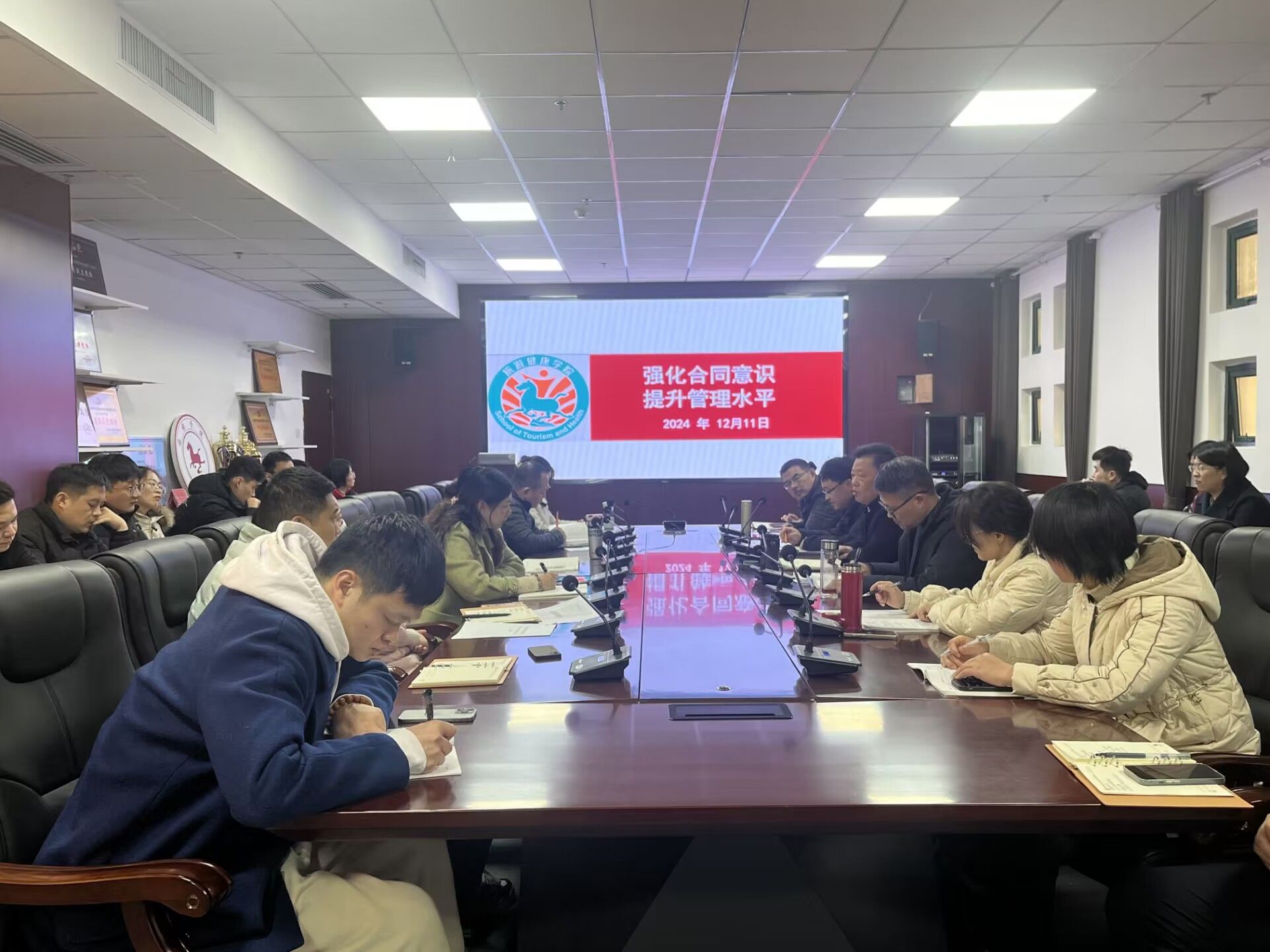 12月11日下午,旅游健康学院在学院会议室召开期末教学工作会议,会议由副院长王彦龙主持,全体教师参加会议。