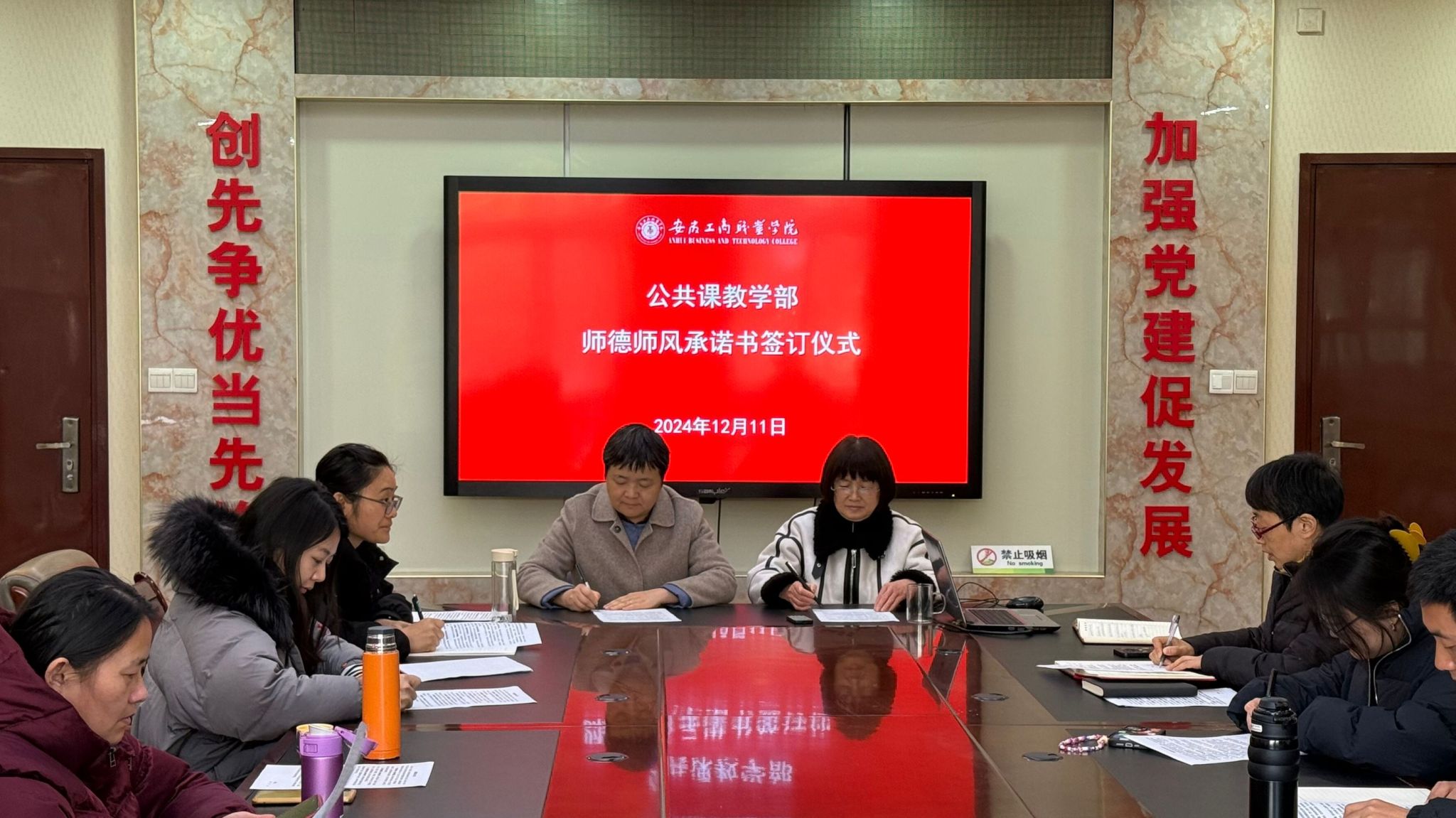 会议聚焦思政课和公共课教育教学中心任务,对照教风学风建设巡视整改要求,深入学习师德规范,强调全体老师要提升思想政治素养与职业道德水平,为培育德才兼备的新时代高素质技能型人才筑牢根基,不断推动学院教育事业高质量发展。