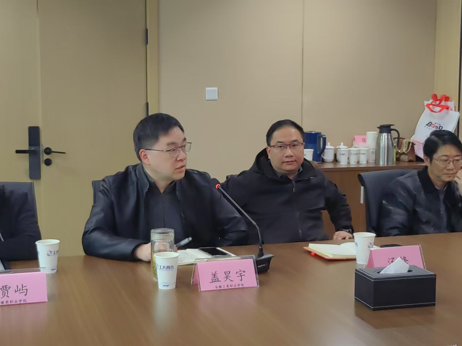 会上,安徽省汽车行业协会会长、合肥工业大学石琴教授做了主题发言,随后,政校企三方就人才培养、项目合作、就业对接、技术交流等方面展开研讨。与会人员分享了汽车行业关键领域的技术现状及发展趋势和用工岗位需求状况,共同探讨职业院校在汽车技术人才培养方面的做法,探索共同开展人才培养、开发实训课程、建设实训基地等校企合作模式。盖昊宇受邀介绍了安徽工商职业学院服务安徽省十大新兴产业、大力发展新能源汽车专业群、积极投身产教融合校企合作的典型经验,并介绍了新能源汽车与智能网联汽车产教融合共同体运行情况。