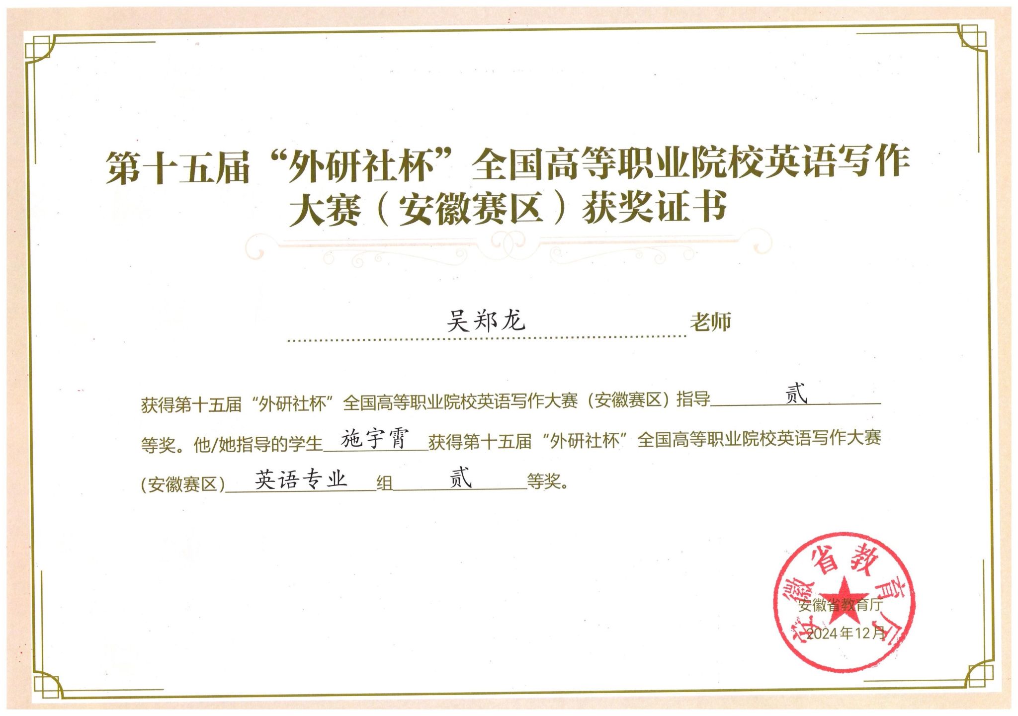2024年11月3日,由安徽省教育厅主办的2024“外研社杯”全国高职高专院校职场英语挑战赛(安徽赛区)英语写作大赛在六安市皖西卫生职业学院举办。世界第一大赌场,澳门金沙城中心:选派经济贸易学院2022级商务英语3班施宇霄参加了该赛项的专业组比赛。经过两个小时的激烈角逐,施宇霄同学最终荣获英语专业组二等奖。