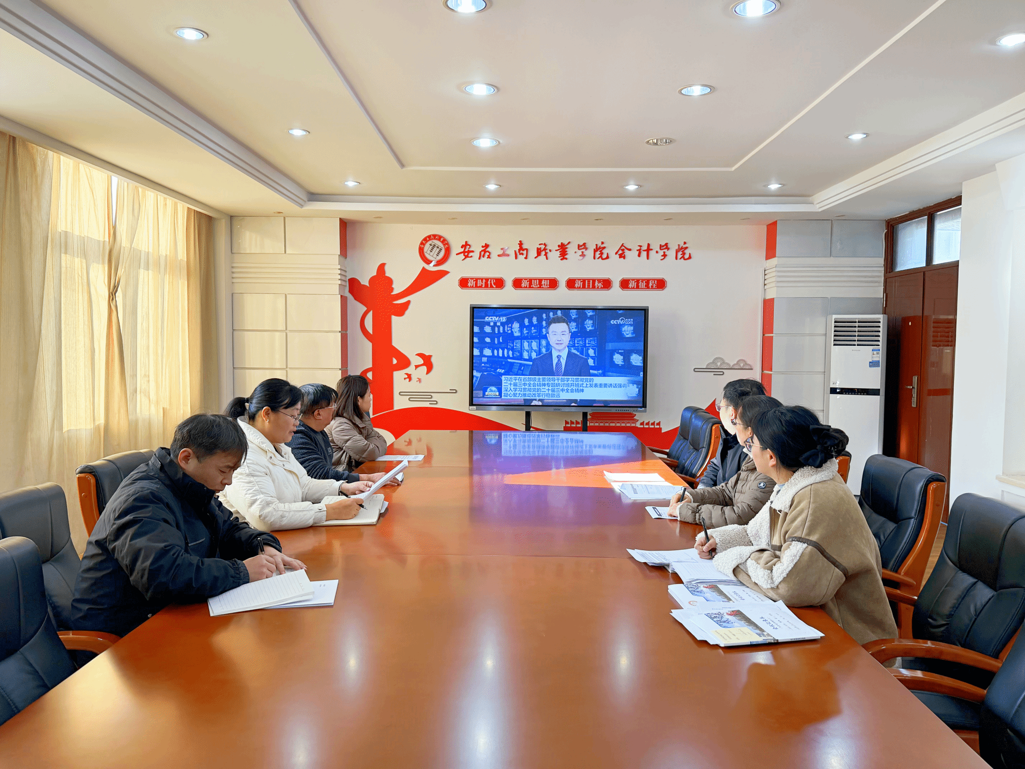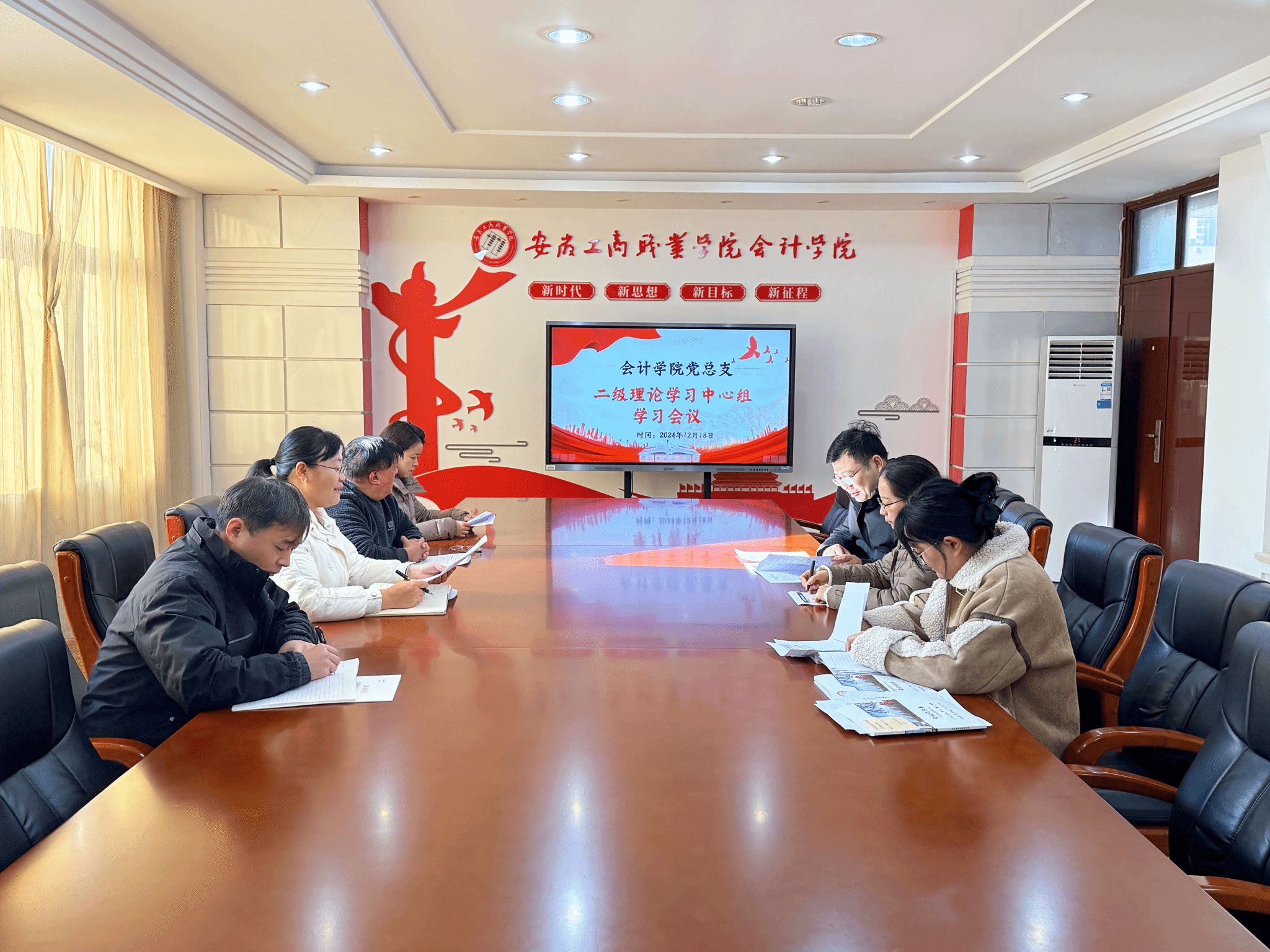 12月18日中午,会计学院党总支在明德楼二楼党建会议室召开二级理论学习中心组学习会议。学院党总支委员参会,会议由党总支书记赵艳主持。