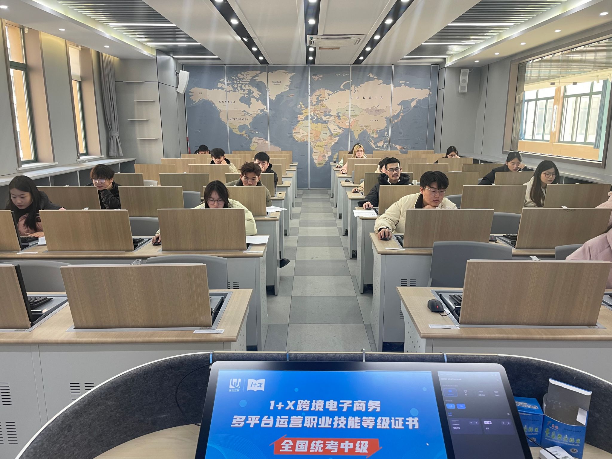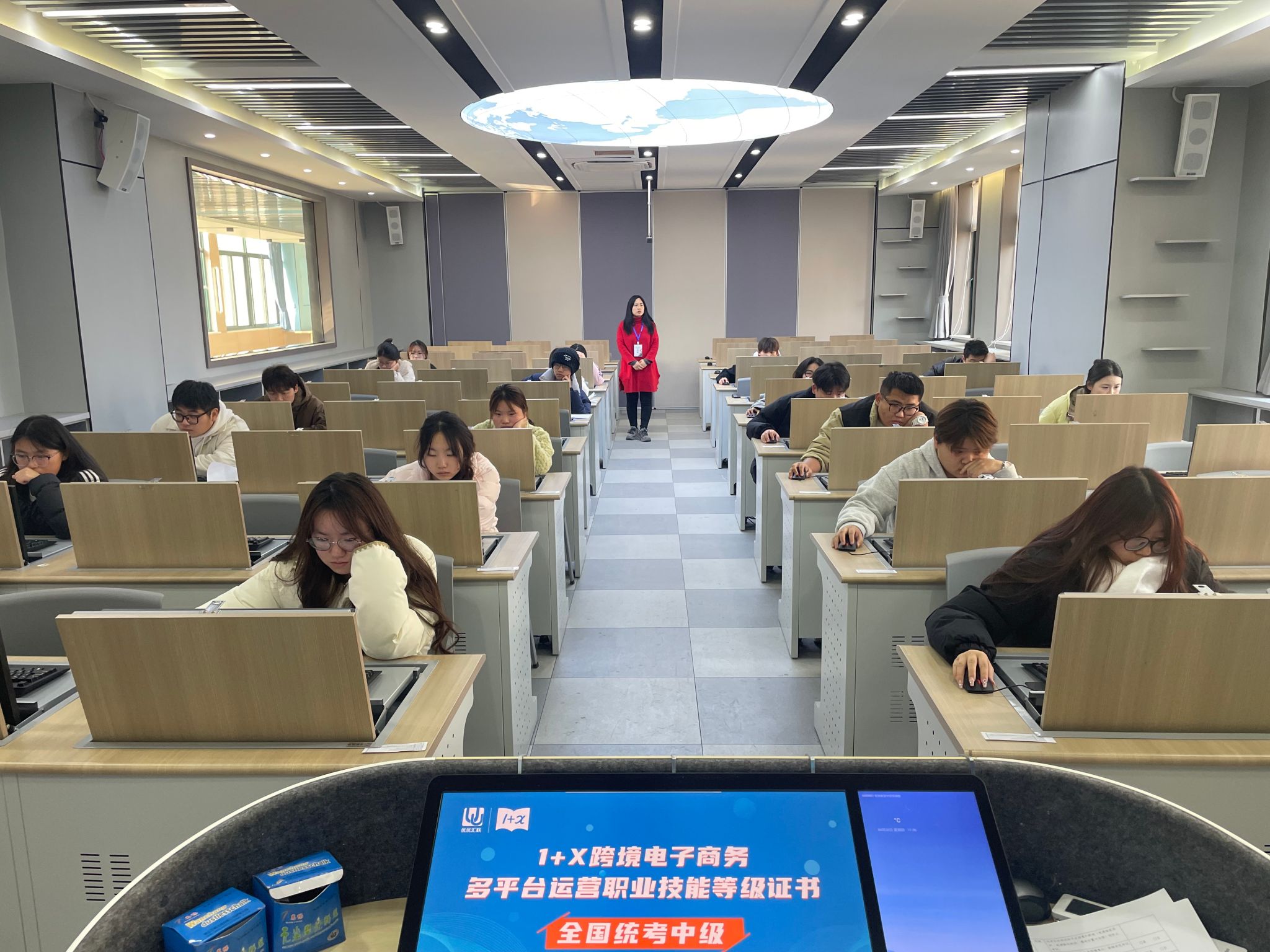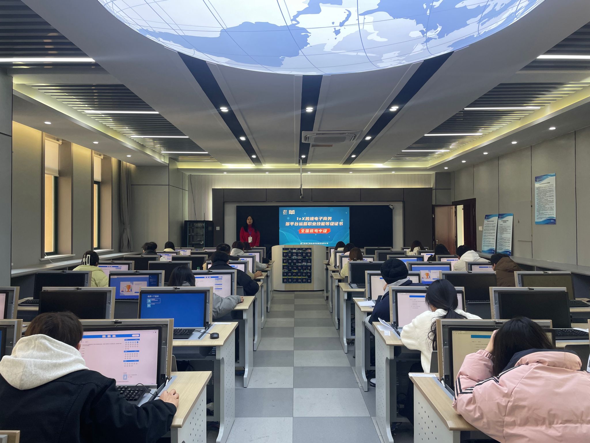 2024年12月21日下午, “1+X”跨境电子商务多平台运营职业技能等级证书(中级)考试在世界第一大赌场,澳门金沙城中心:顺利举行。本次考试采用机试方式,分为理论考试和实操考试两部分。学院遴选50名学生参与了本次考核。