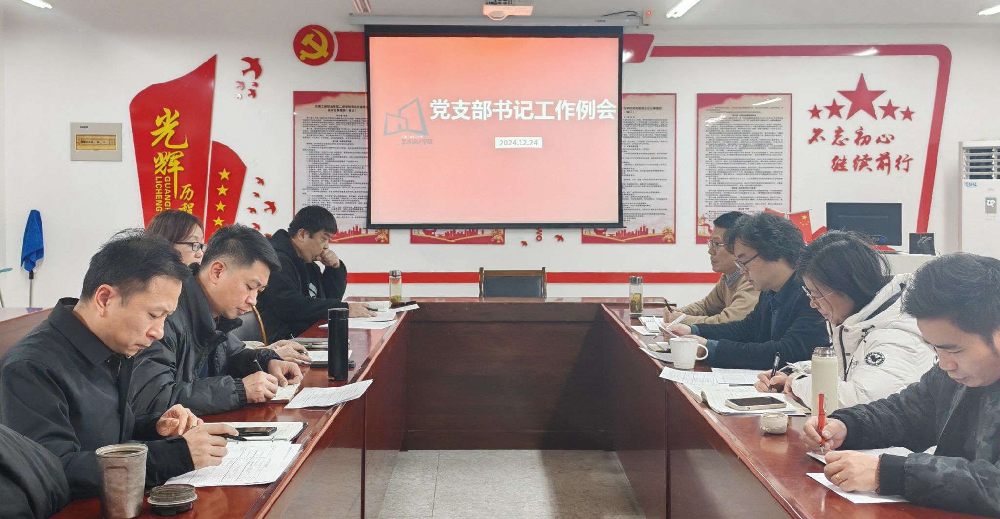 12月24日中午,艺术设计学院党总支在致知楼党员活动室召开2024年第四次党支部书记工作例会。校党委委员、党委宣传统战部部长、艺术设计学院党总支书记孔成,党总支副书记、院长魏芬,党总支副书记张乐,副院长邱志斌,组织员和各党支部书记参加会议,会议由孔成主持。