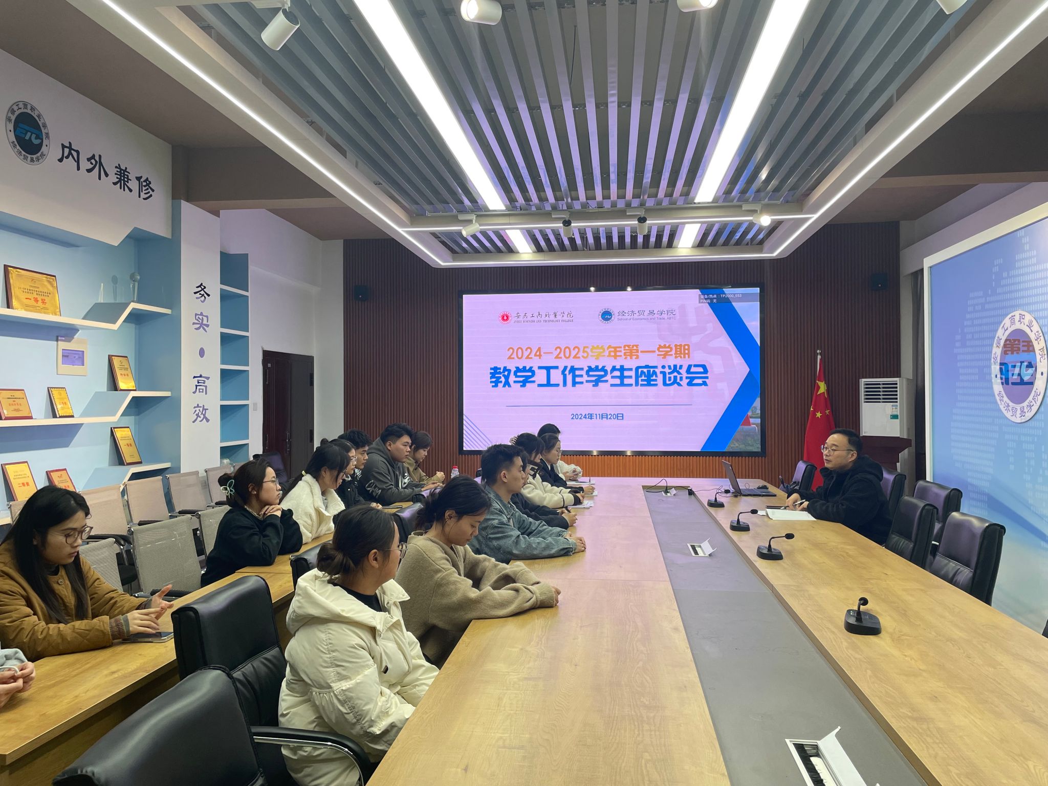 为深入了解教师课堂教学管理情况,切实提高教育教学质量,11月-12月期间,经济贸易学院组织召开2024-2025学年第一学期教学工作学生座谈会。学院2022级、2023级、2024级各班级学生代表参会,张键副院长主持会议。