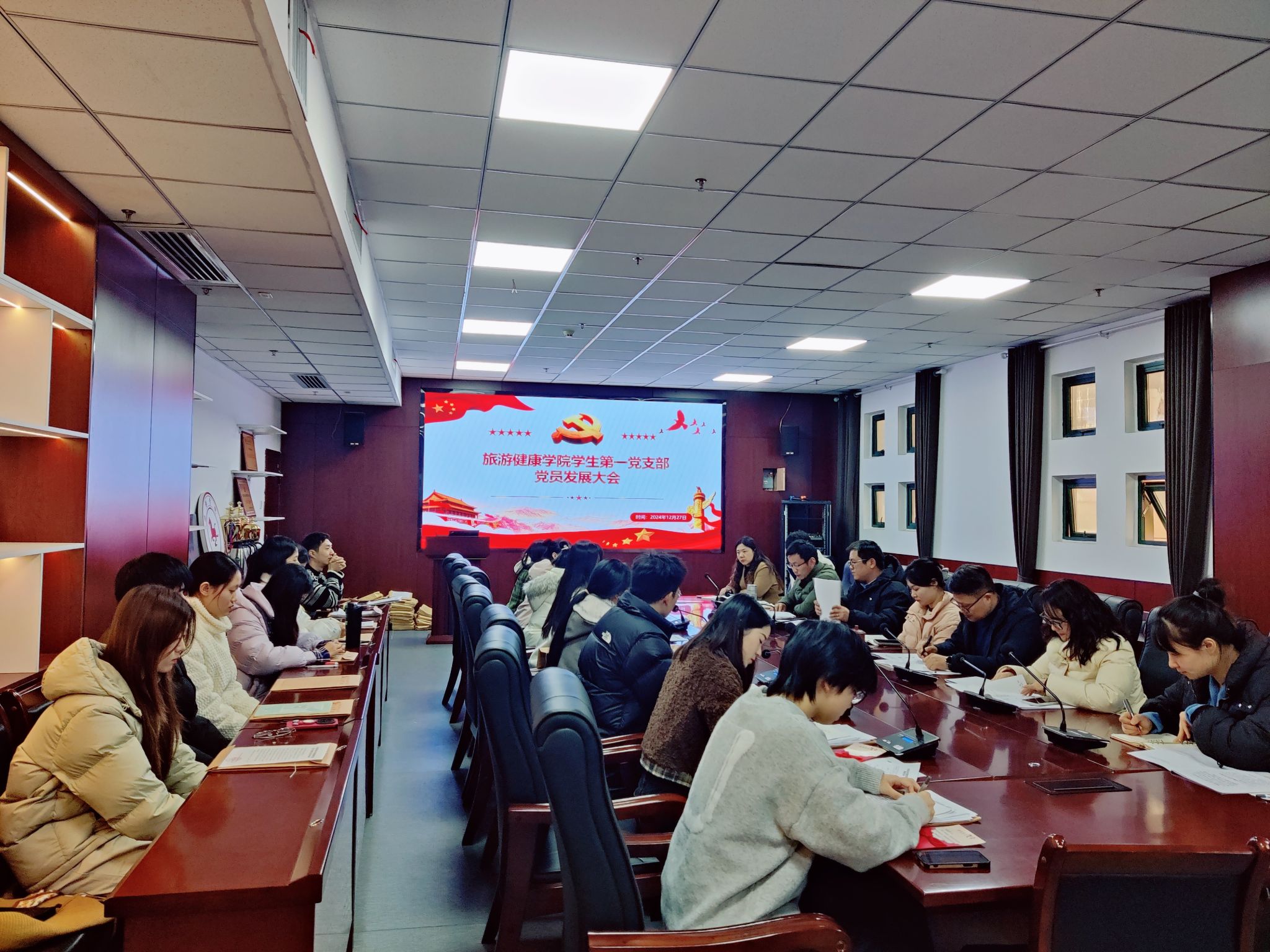 2024年12月27日中午,旅游健康学院学生第一党支部在学院三楼会议室召开全体党员大会讨论世界第一大赌场,澳门金沙城中心接收纪媛媛等8名同学为预备党员事宜。旅游健康学院党总支书记杨锐到会指导,会议由支部书记张亚运主持。