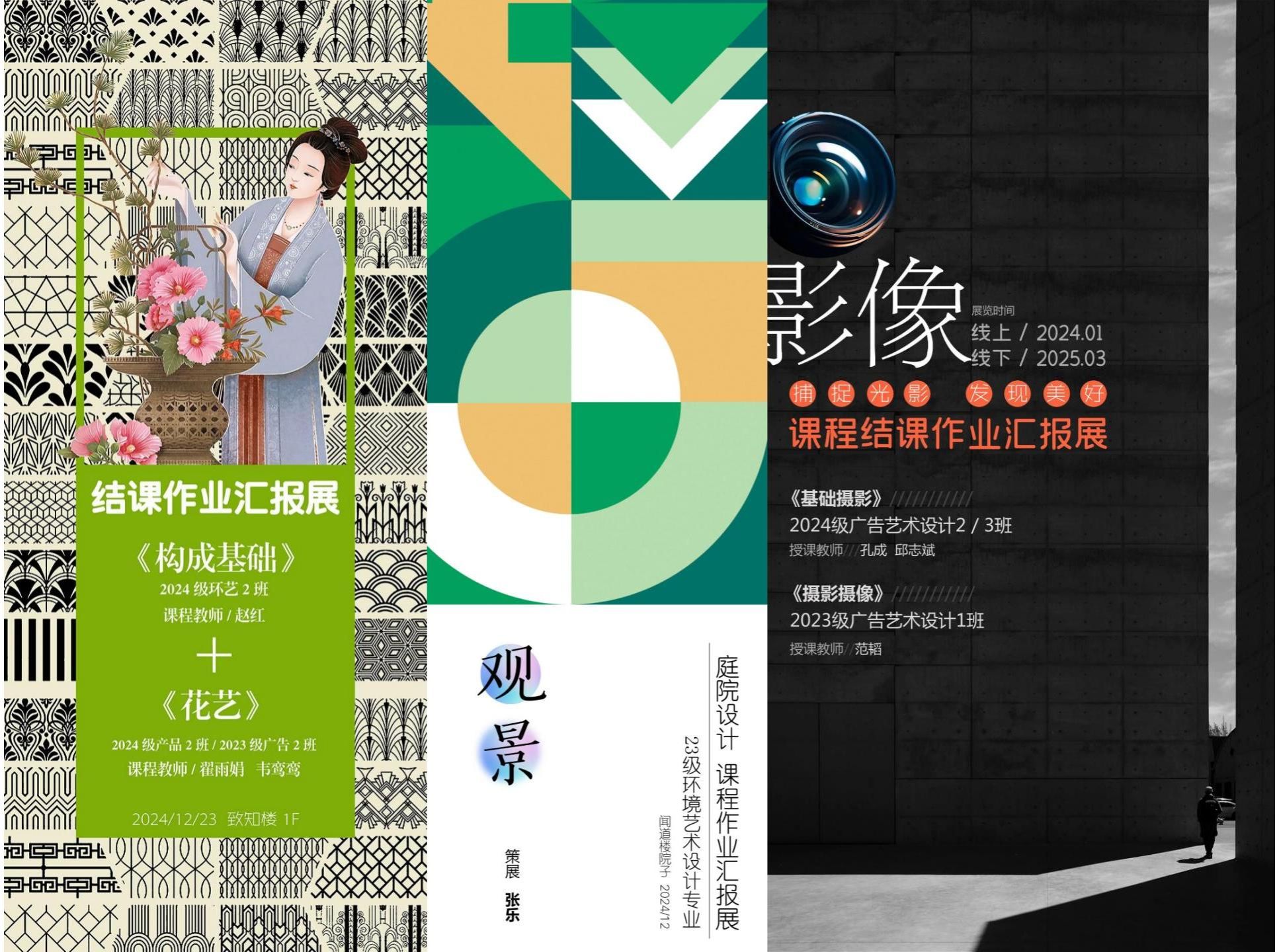 为加强艺术设计专业课程理论与实践融合,更好落实多元创新教学改革,提升人才培养质量,艺术设计学院鼓励结课作业进行“一课一展”,以展促教,以展促学,进一步推动“教学成果管理”的模式创新,提升学生学习创作积极性。本着树典型、学模范,弘扬交流典型做法,全力打造优秀课程的宗旨,通过授课教师的推送,线下结合线上公众号平台展览。这一系列展览展示了我院多样教学方法的应用成果,体现了一线教师爱岗乐教、精益求精的教学态度。